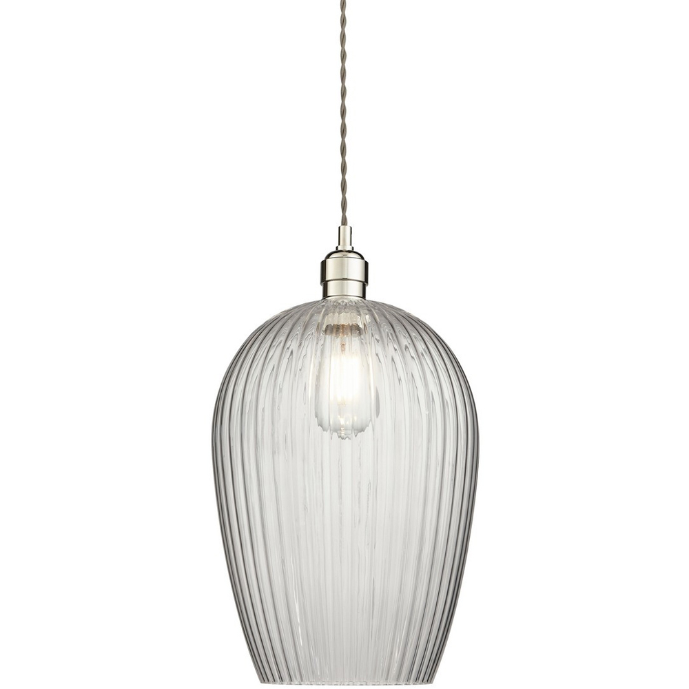 Merano Livorno Ribbed Glass Bright Nickel Plate Dome Pendant Ceiling Light