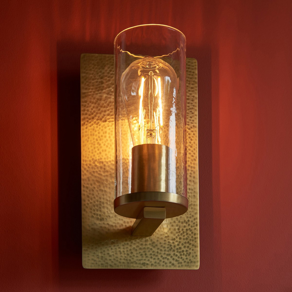 Merano Palermo Hammered Brass Plate with Textured Clear Glass Wall Lamp