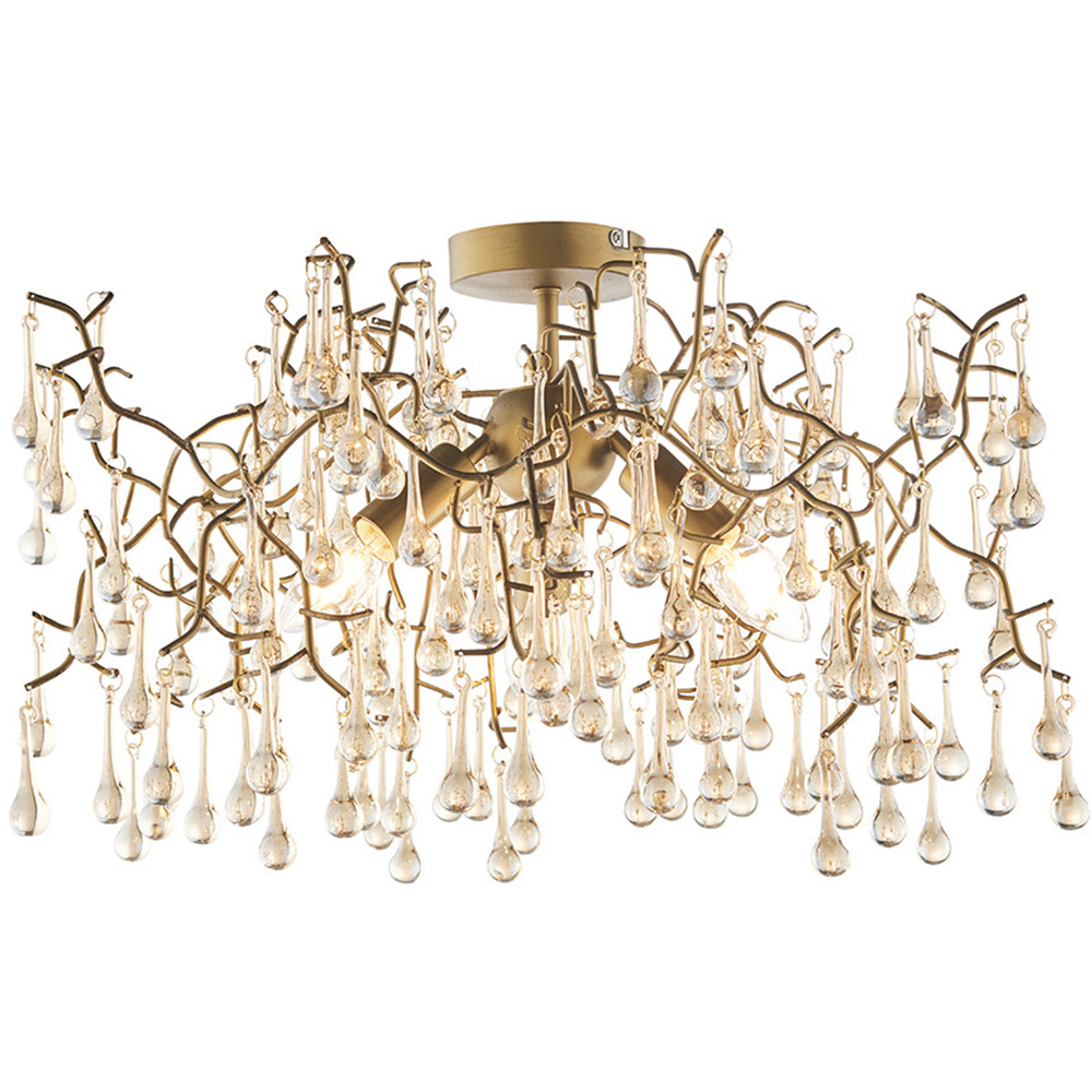 Elevate your home's ambiance with the Merano Rimini Lustre Glass Aged Gold 3 Light Semi Flush Ceiling Pendant. Lustre glass teardrops in a rich aged gold finish add instant elegance. Its adjustable height ensures a perfect fit in dining rooms or living rooms, while three lights provide dazzling overhead illumination.