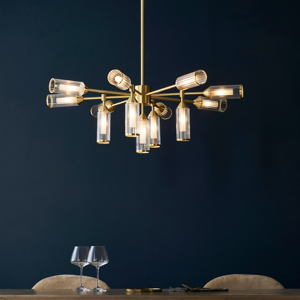 Merano Trieste Clear Frosted Glass Satin Brass Plate Multi Arm Pendant Ceiling Light