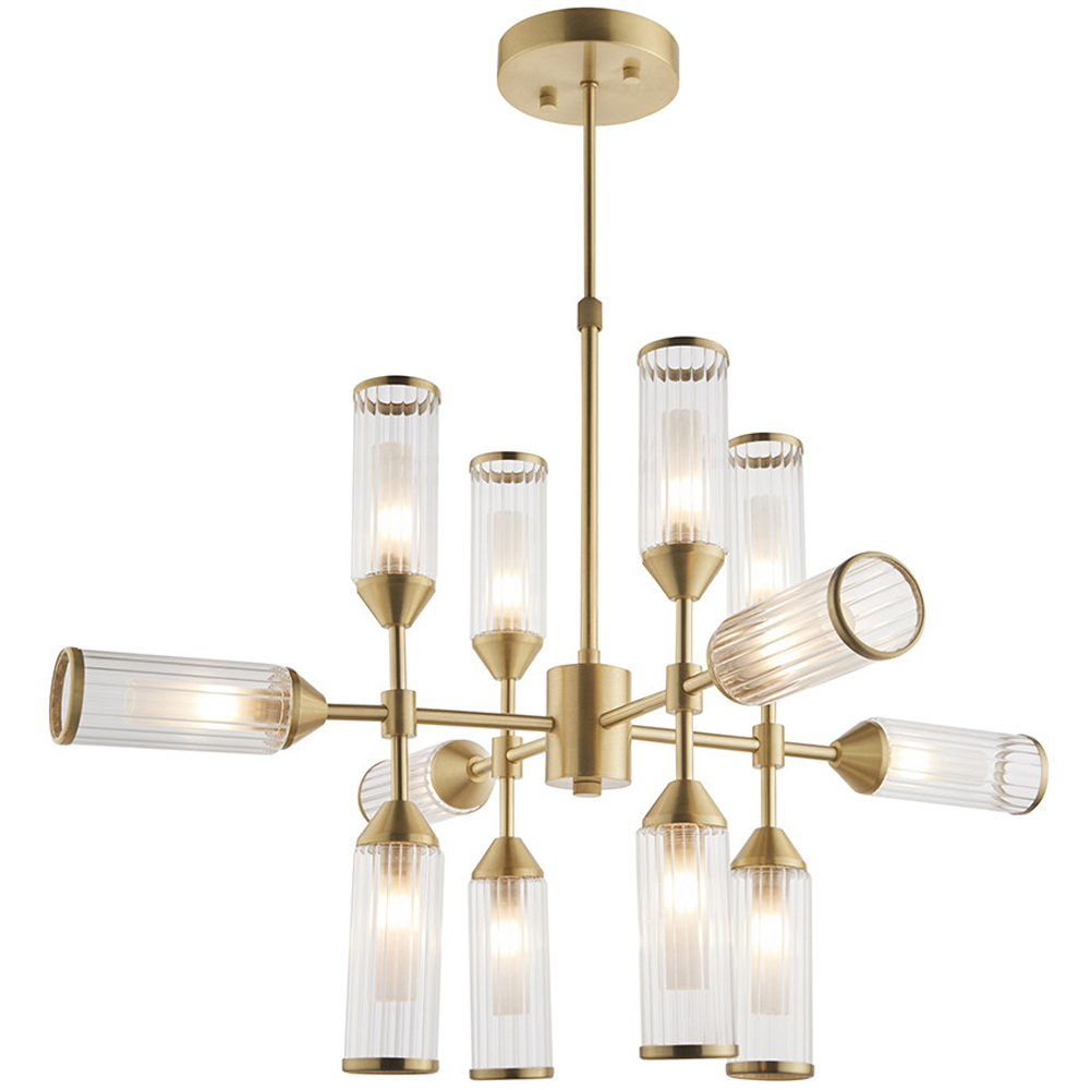 Merano Trieste Satin Brass and Frosted Glass 12 Light Ceiling Pendant