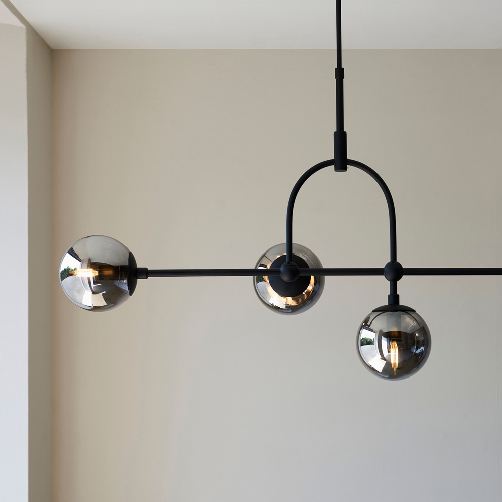 Merano Trieste Smoked Mirror Glass Matt Black Bar Pendant Ceiling Light