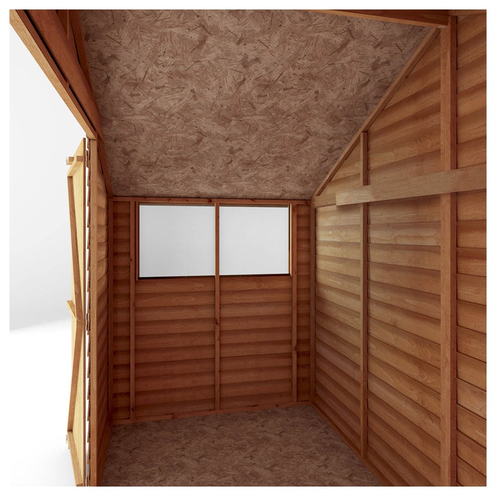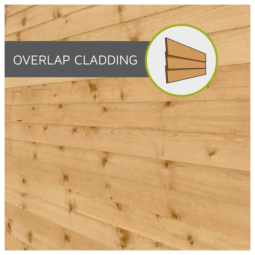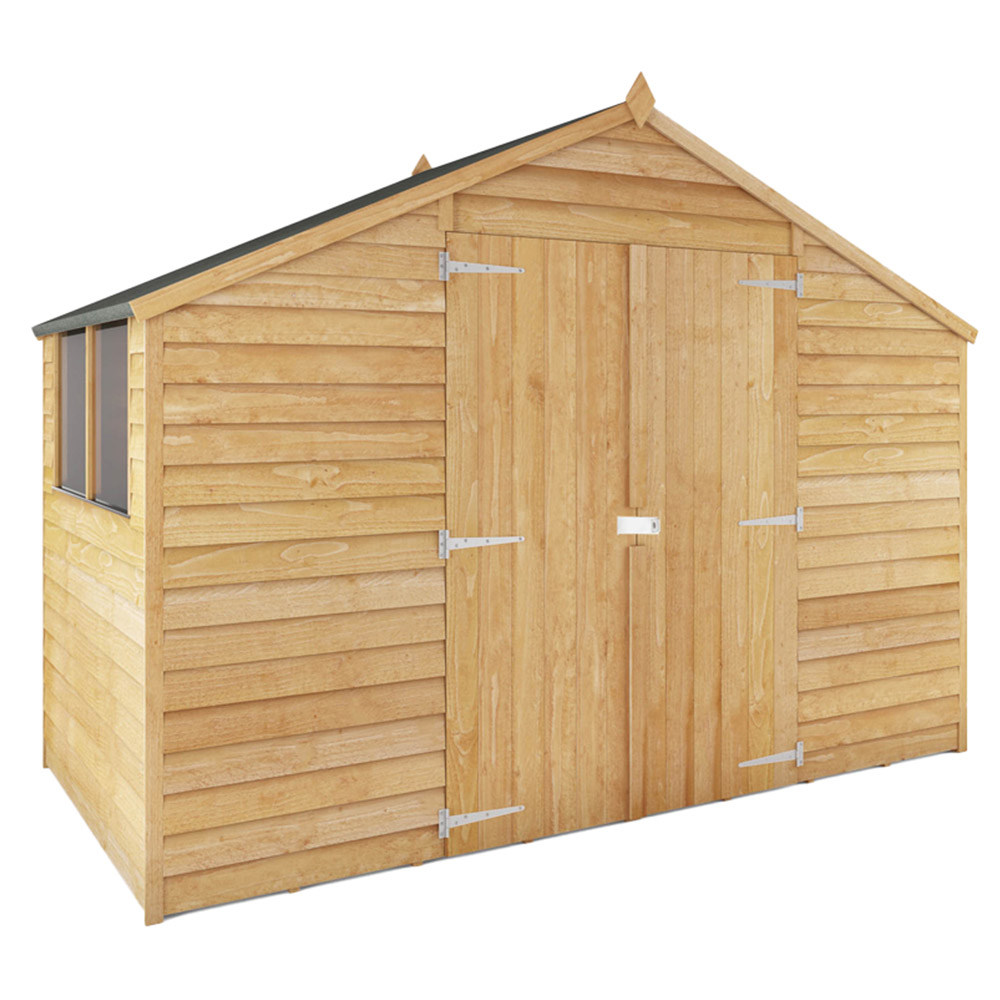 Experience the ultimate in garden storage with the Overlap Apex Wooden Shed from Mercia Garden. This versatile structure offers a generous interior, perfectly suited for a myriad of uses, whether as a dedicated workshop or simply as a spacious storage solution for your garden tools and furniture. The double doors allow for effortless access, making it easy to store larger items like wheelbarrows and ladders. Natural light pours in through the safe, shatterproof styrene windows, enhancing the practicality of the interior. Proudly manufactured in the UK from ethically sourced, FSC-certified timber, this building exemplifies a commitment to quality and value. The walls are constructed using overlapping horizontal boards, a traditional technique that fosters durability while promoting efficient rainwater runoff, keeping your belongings protected from the weather. Robust solid sheet board flooring and roofing adds resilience, formed from tightly compacted layers, perfect for everyday use and general storage. To ensure structural integrity, this building features thick wooden internal framing that supports the overlap panelling for a long-lasting design. Its classic apex roofline affords ample headroom, making it ideal for accommodating taller items and storage units. Complete with sturdy roofing felt and all necessary fixtures, this shed comes with comprehensive instructions and manufacturer recommendations for straightforward assembly. Rest easy knowing your investment is safeguarded by a conditional 10-year Anti-rot guarantee and a 12-month manufacturer’s warranty, ensuring that your garden building remains a staple of functionality and style for years to come. Annual re-treatment is essential to maintain the anti-rot guarantee. Size: 5 x 10ft.