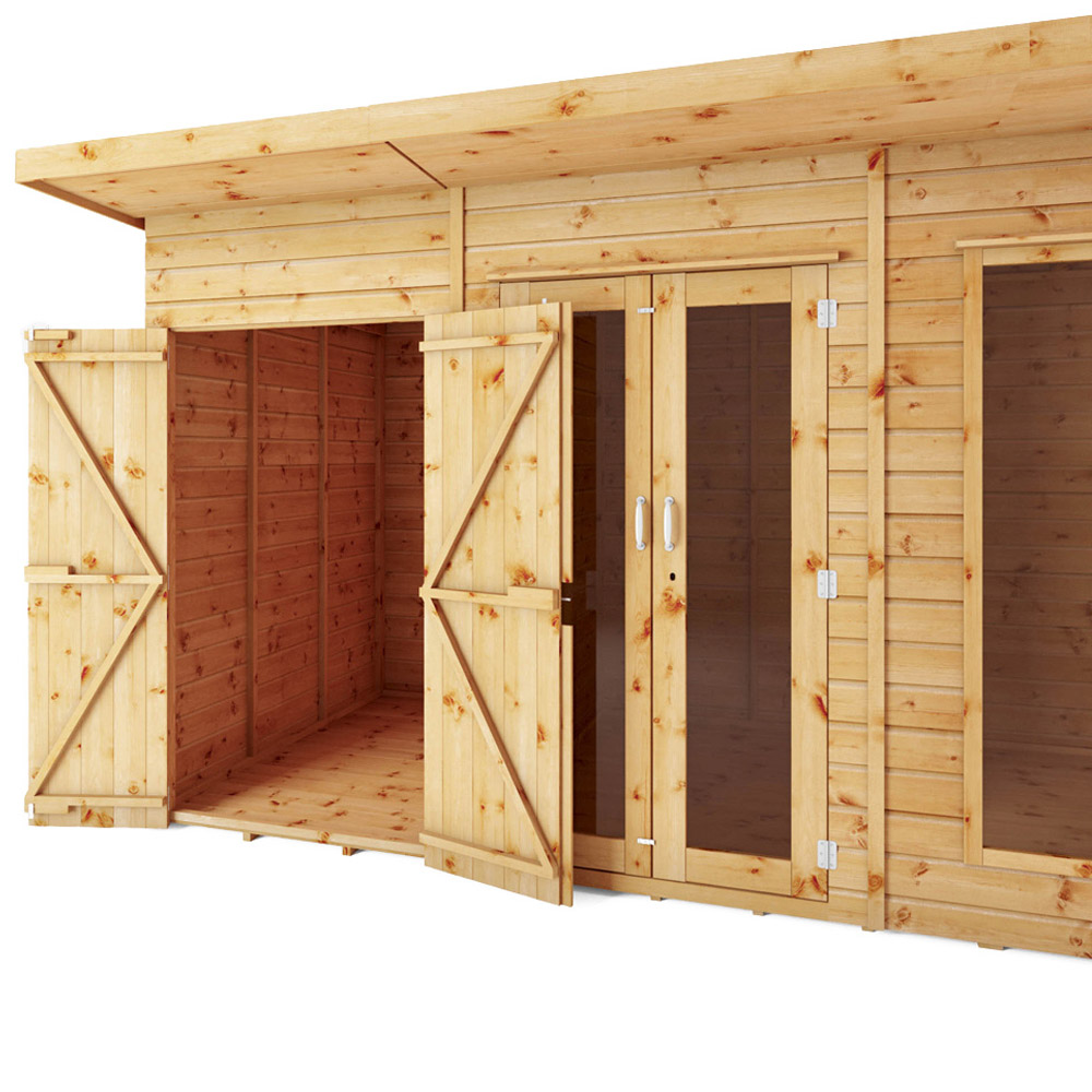 Mercia Maine 14 x 6ft Double Door Shiplap Pent Traditional Summerhouse with Side Shed