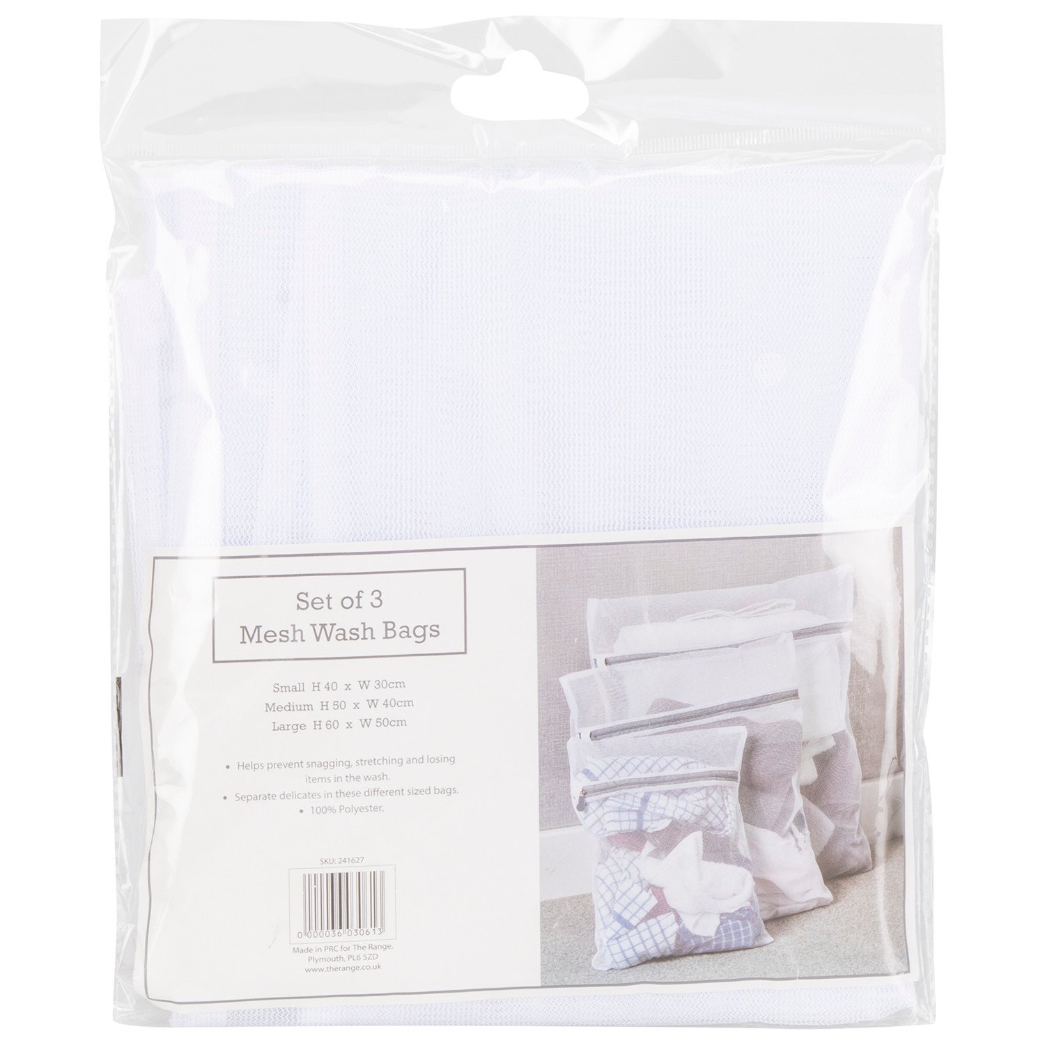 Keep your clothes safe and sound during laundry day with this practical set of three mesh wash bags. Each bag features a durable polyester construction and a soft-grip zip for easy opening and closing. The set includes small, medium, and large sizes, perfect for protecting your clothes from becoming snagged, stretched, or lost when in the washing machine. These versatile bags are ideal for home use or travel.