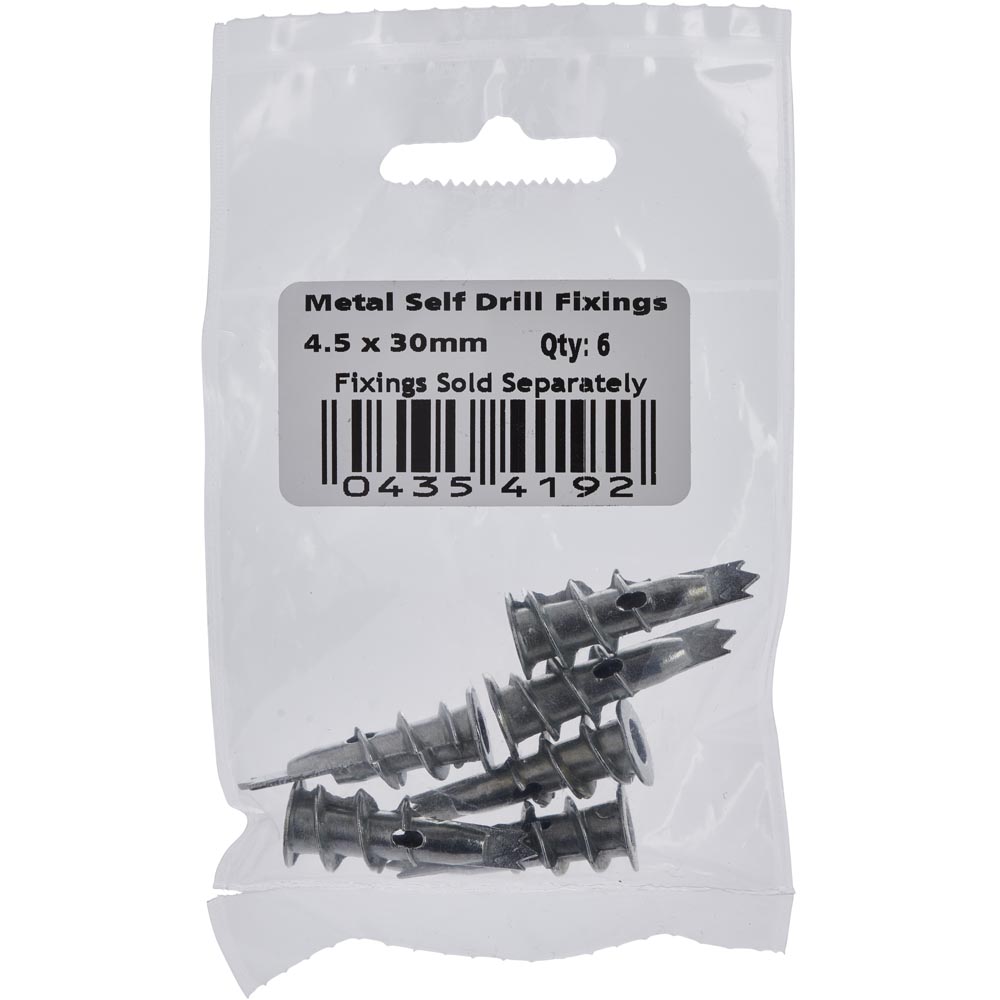 This self-drilling plasterboard fixings six-pack is perfect for securing items to hollow walls. Ideal for installing sockets, light switches, pictures, bathroom fittings, and more. No pilot hole is needed; simply screw the fixing straight into the plasterboard.