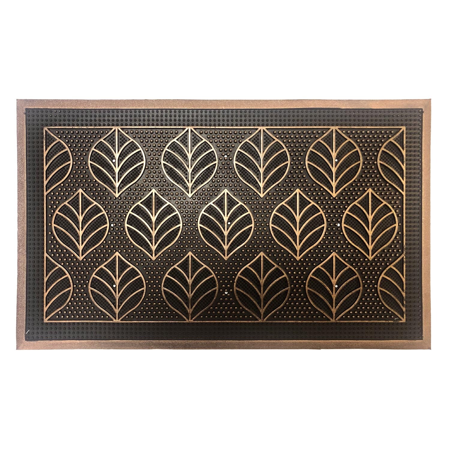 Enhance your entryway with our stylish Moulded Rubber Mat. Available in two designs—a golden leaf pattern or a metallic silver "hello"—this durable rubber mat effectively scrapes away dirt from shoes, keeping your home clean. It offers both practicality and aesthetic appeal.