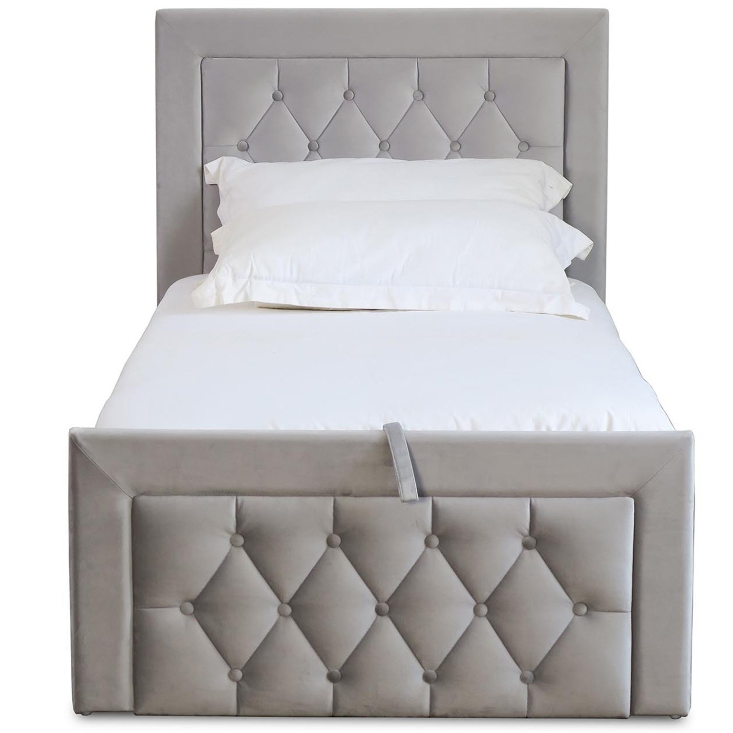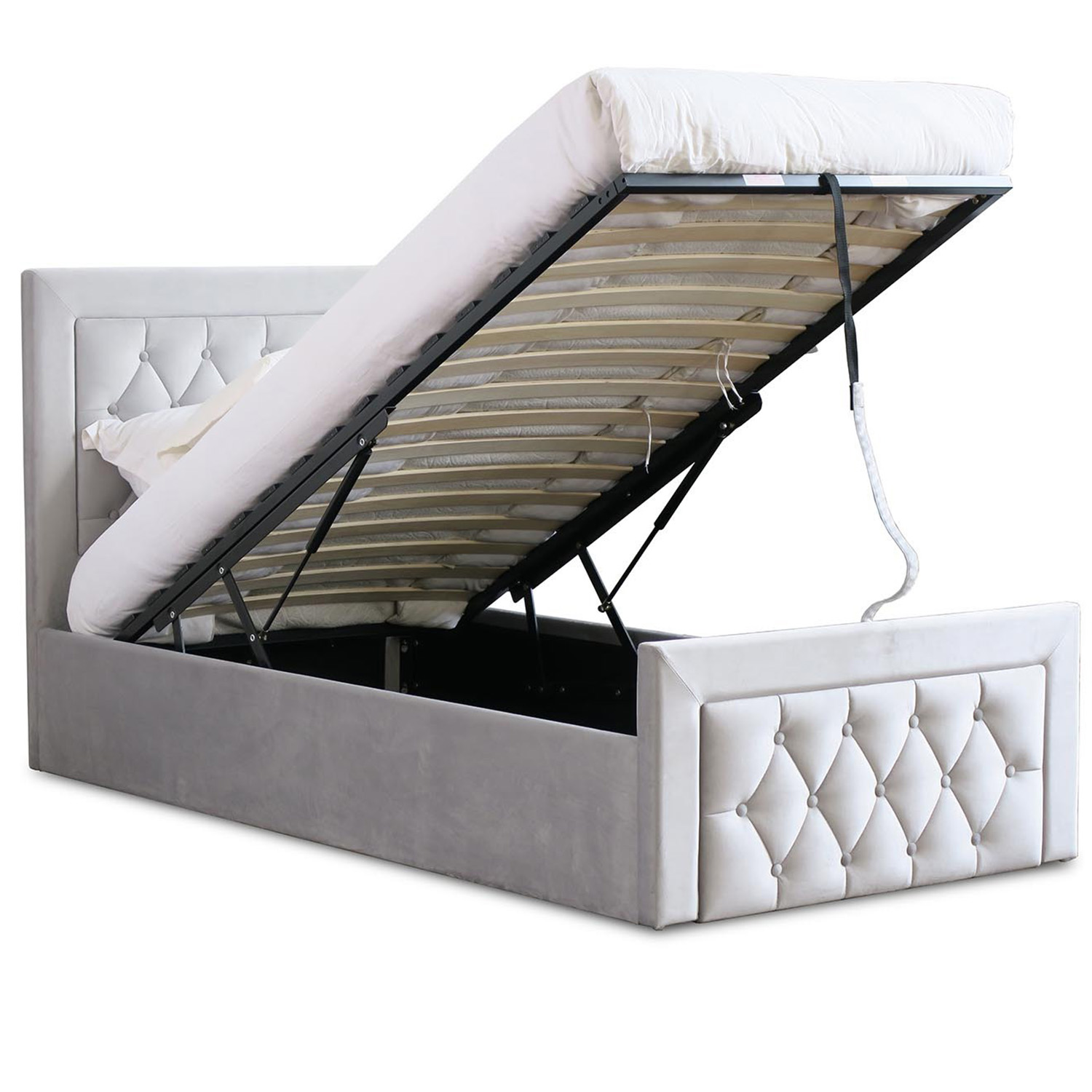 The Mia ottoman bed: understated elegance meets clever storage. Its brushed grey velvet upholstery, adorning both headboard and base, adds a touch of sophistication to any bedroom. This stylish bed frame cleverly incorporates ottoman storage, perfect for bedding or seasonal clothing, keeping your space clutter-free. Constructed from durable yet affordable materials, the Mia promises both comfort and lasting quality. Simple assembly ensures you'll be enjoying restful nights in no time.