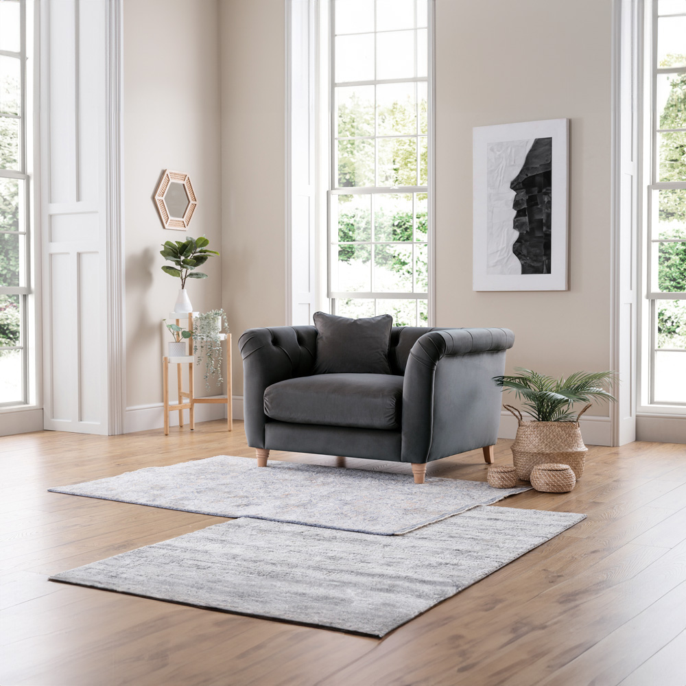Indulge in the Midnight Blue Velvet Armchair. Reimagine your living space with this plush addition, perfect for adding a touch of sophisticated comfort. The fully reversible seat cushion, boasting a pocket spring core complemented by feathers and fibre, ensures a sumptuously soft seating experience. Crafted from a soft-touch, crush-resistant velvet, this armchair exudes charm with its deep buttoning and generously padded arms. Elevate your home décor effortlessly with this stylish armchair.