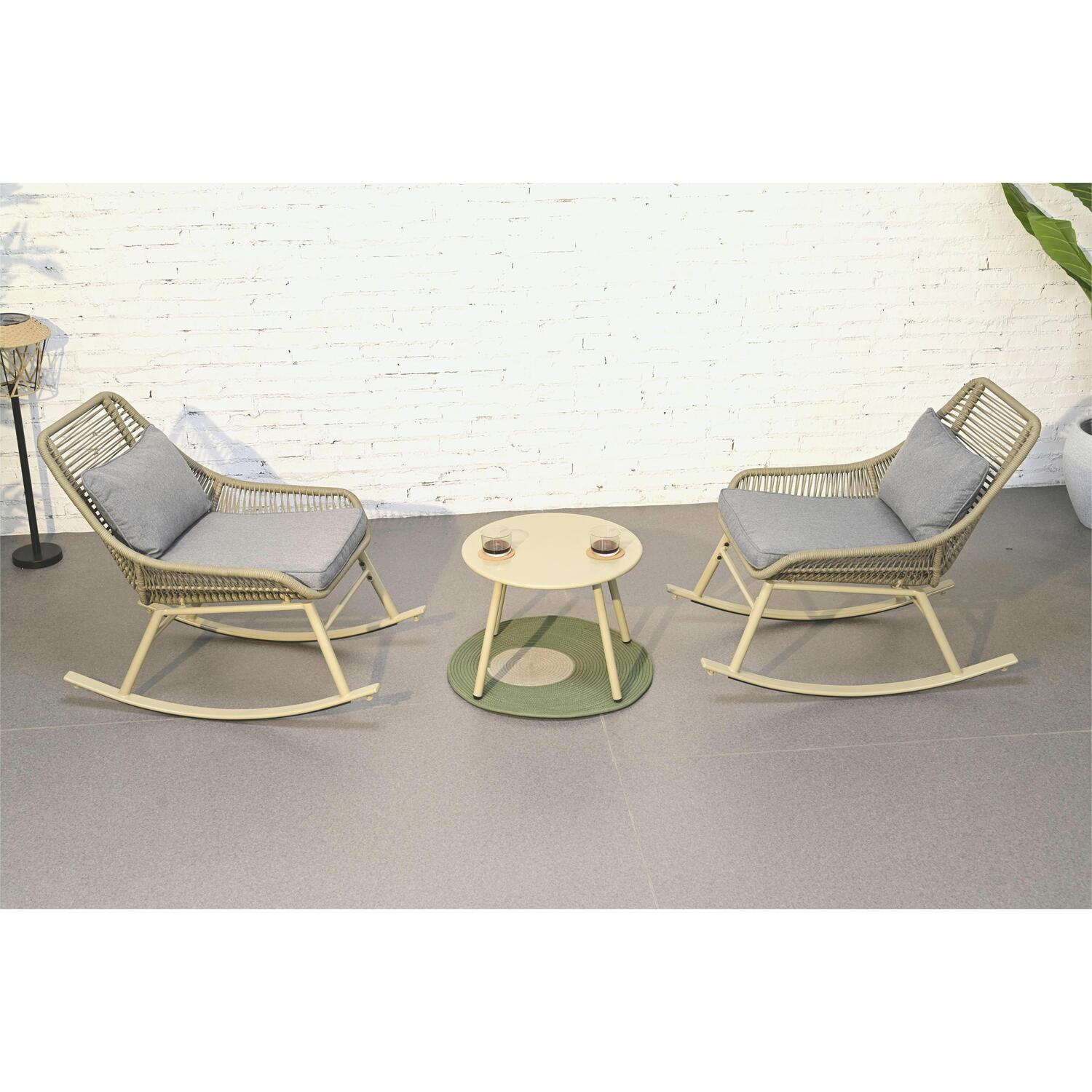 Ideal for smaller gardens, patios or balconies, this Milano Rocker Set will transform your outdoor space. The on-trend grey wickerwork lends a contemporary feel, certain to enhance your garden. A durable steel frame combines with luxurious, removable cushions for the ultimate in comfort, allowing you to bask in the summer sun in style. Cleaning is easy, and the included side table offers the ideal spot for drinks and snacks, so you can truly relax and unwind.