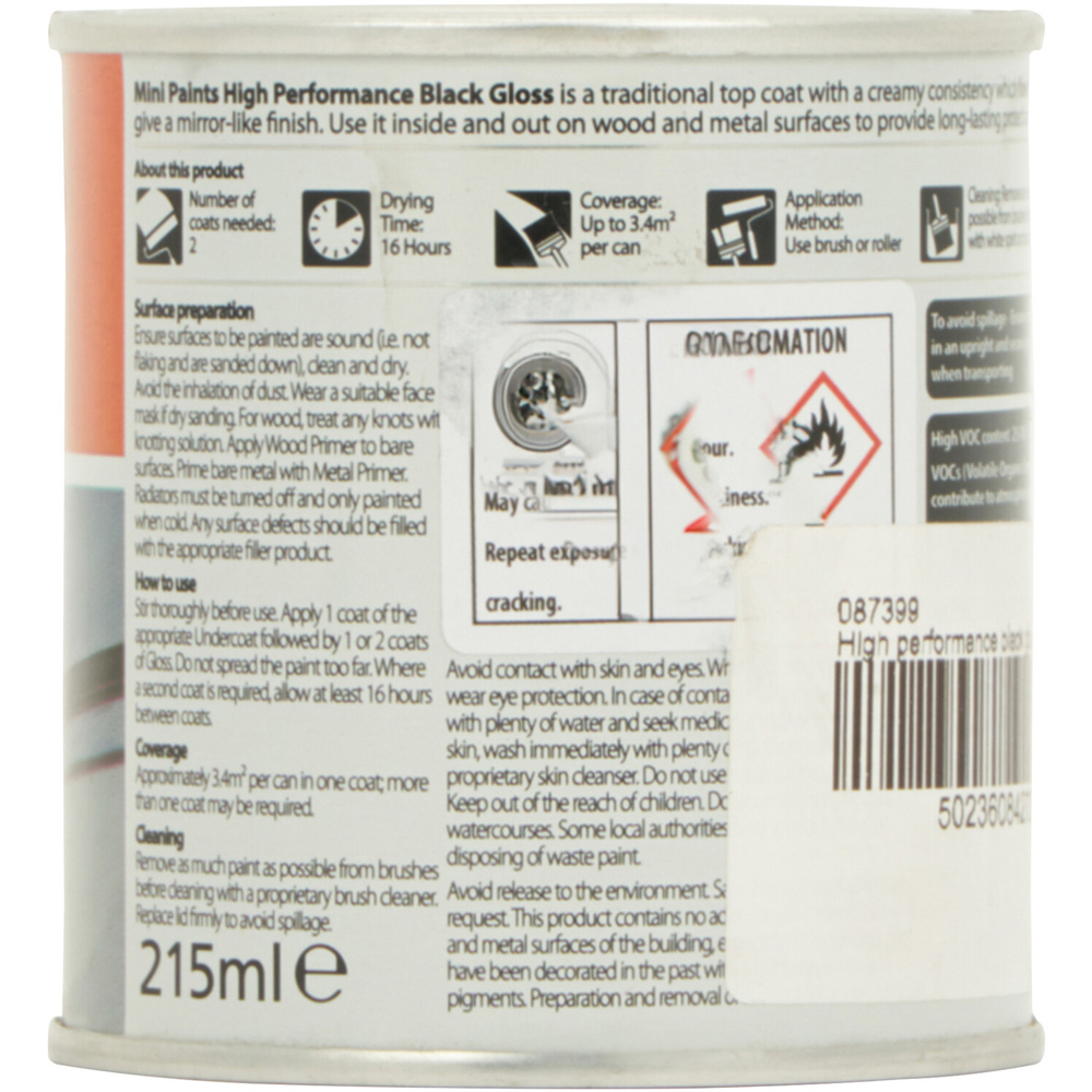 Transform your home with Mini Paints High Performance Black Gloss. Achieve a stunning mirror-like finish on interior and exterior wood and metal surfaces. This durable, weather-resistant paint offers great value and is perfect for revitalizing door knockers, fixings, and more.