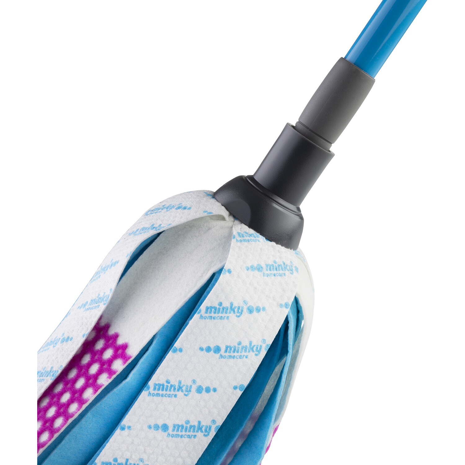 Effortlessly restore your mop's cleaning power with the Minky 3-in-1 Power Clean Mop Refill. Its 100% blue microfibre strands tackle tough grease, while pink 3D microbristles lift dirt and hair. The super-absorbent centre ensures streak-free results, quickly mopping away residue. Simple screw-on replacement for convenient cleaning.
