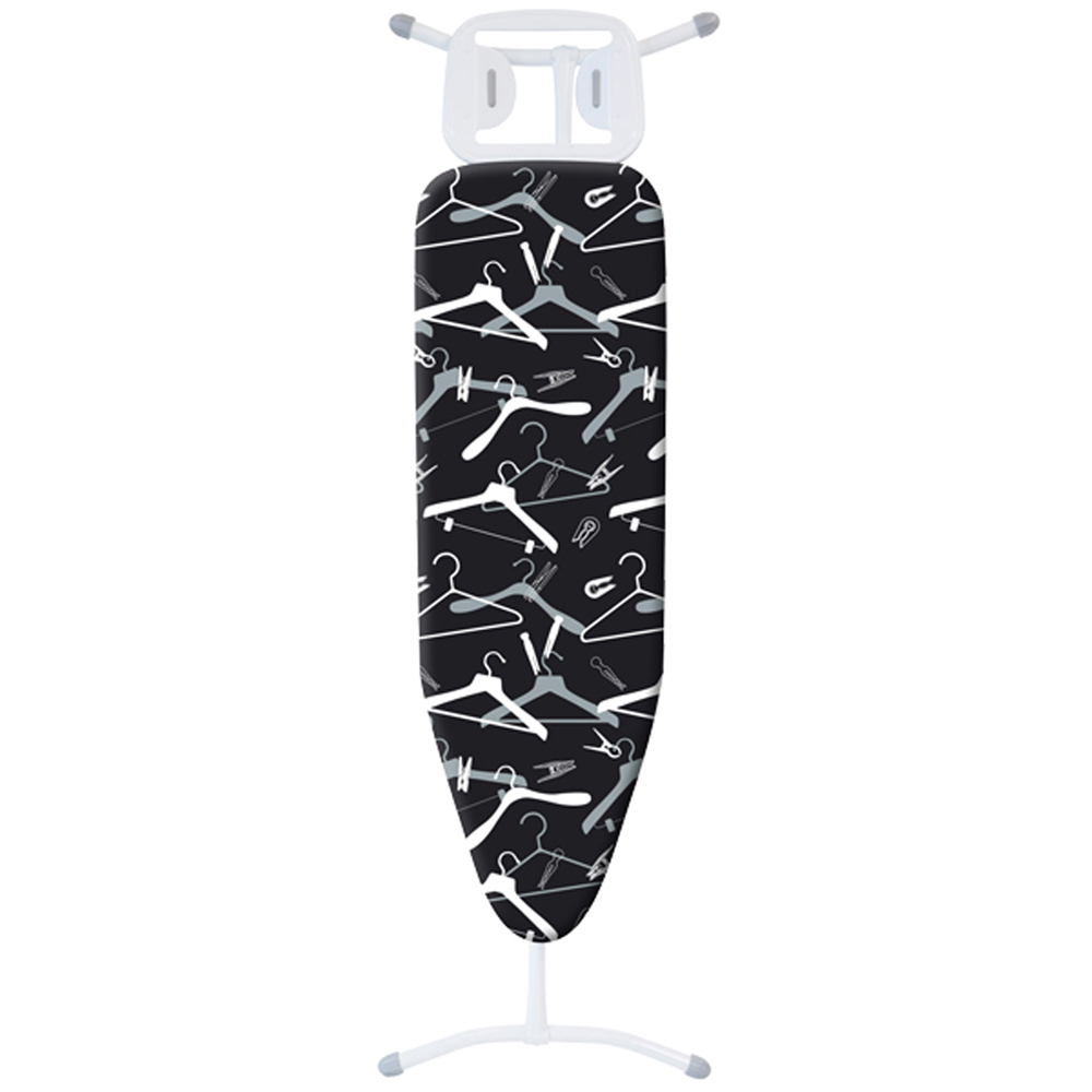 Upgrade your laundry routine with the Minky Black and White Select Ironing Board. This board provides a stable ironing surface thanks to its sturdy T-leg design and a convenient steam-safe rest. Adjust the height to suit you, up to 86cm. The steam-efficient, foam-backed cover ensures smooth ironing, backed by a one-year Steamflow guarantee.