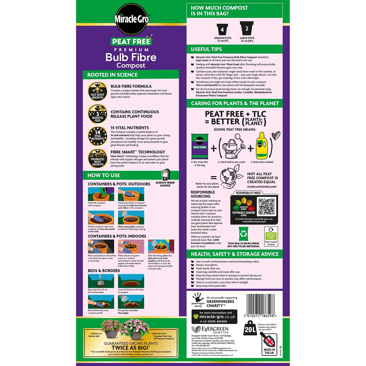 This Miracle-Gro Bulb Fibre is a peat-free compost, specially formulated to cater to the needs of all your bulb plants, such as tulips, daffodils, hyacinths and crocus. Its patented smart fibre technologies and the availability of all the nutrients, NPK and trace elements encourage fast root growth and help bulbs replenish themselves and thrive again next season.