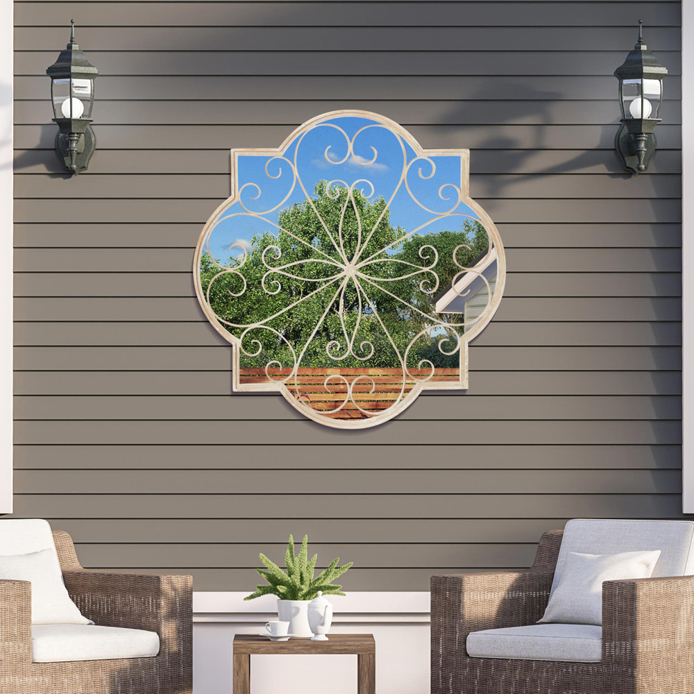 MirrorOutlet Cream Metal Rose Petal Shaped Window Garden Mirror 90 x 90cm