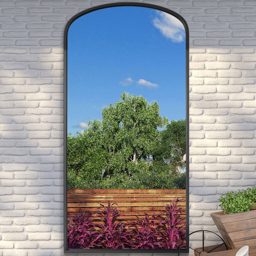 MirrorOutlet The Angustus Black Metal Arched Garden Wall Mirror 200 x 100cm