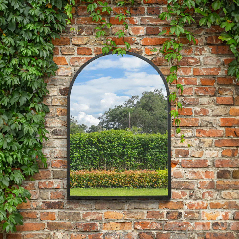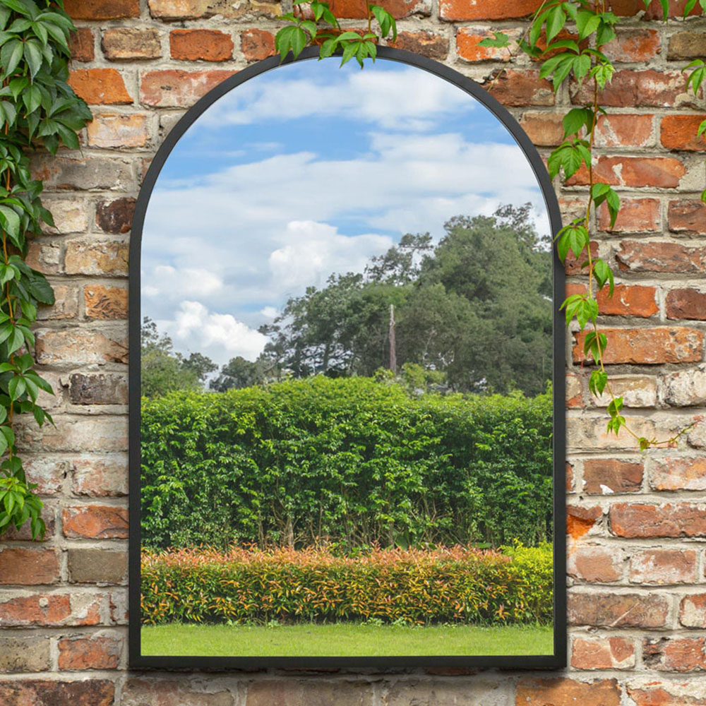 MirrorOutlet The Arcus Black Framed Arched Garden Wall Mirror 100 x 70cm