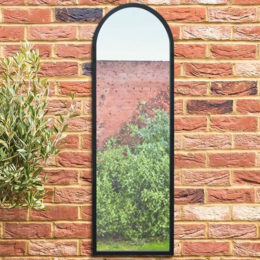 MirrorOutlet The Arcus Black Framed Arched Garden Wall Mirror 120 x 40cm