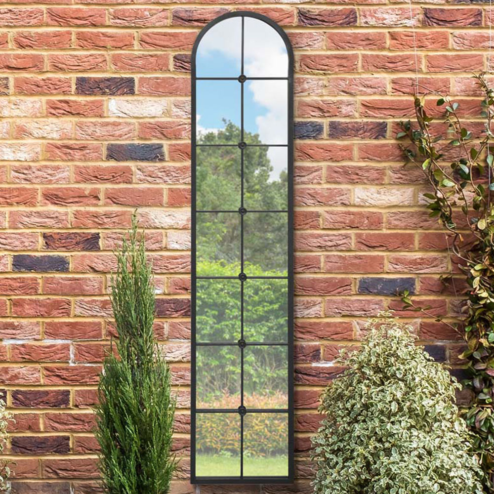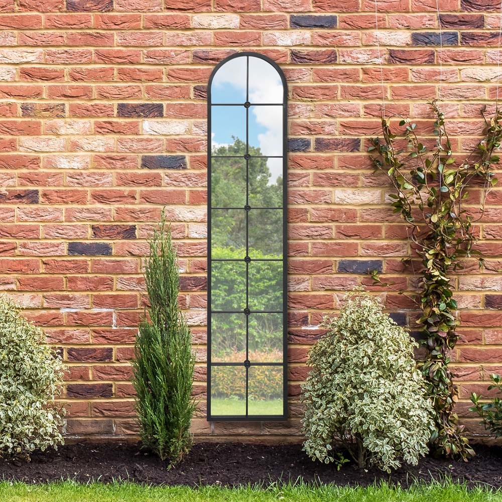 MirrorOutlet The Arcus Black Framed Arched Leaner Garden Wall Mirror 190 x 40cm