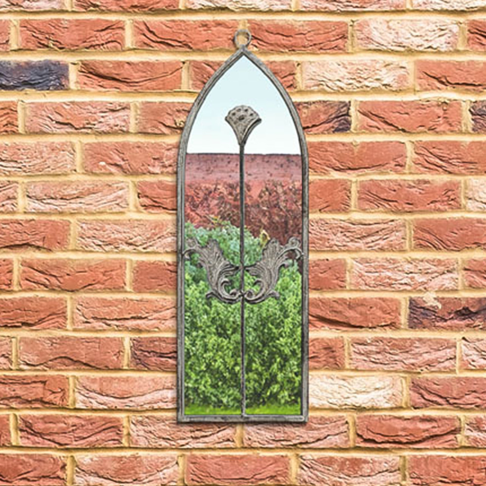 Enhance your outdoor space or add a touch of elegance indoors with this arched leaner garden wall mirror. Its concrete-effect metal frame complements the mirror glass, while a black, all-weather backing ensures durability. Simple to install with its keyhole fixing – just hook it onto a screw. This stylish mirror, perfect for a variety of settings, measures 60cm x 20cm.