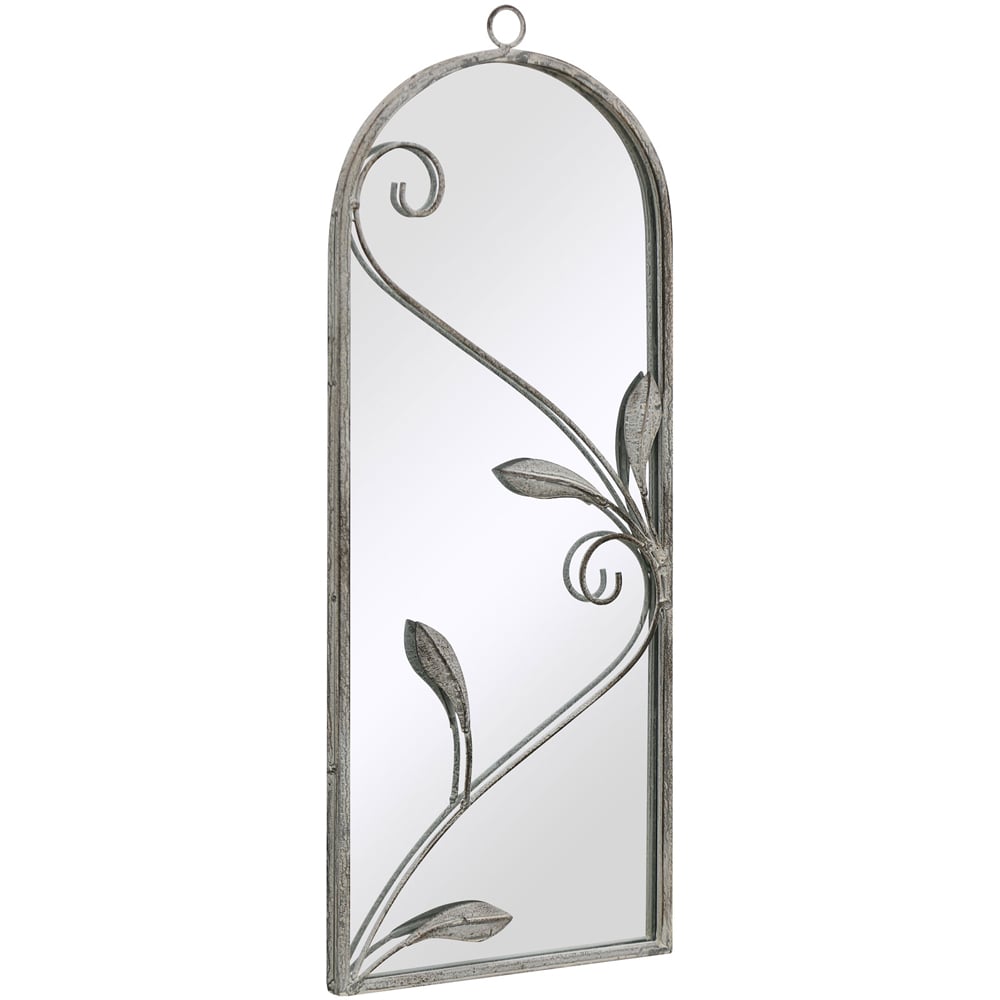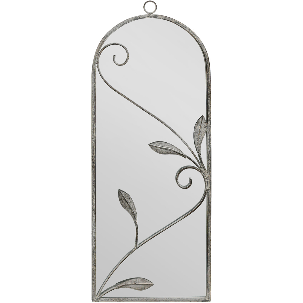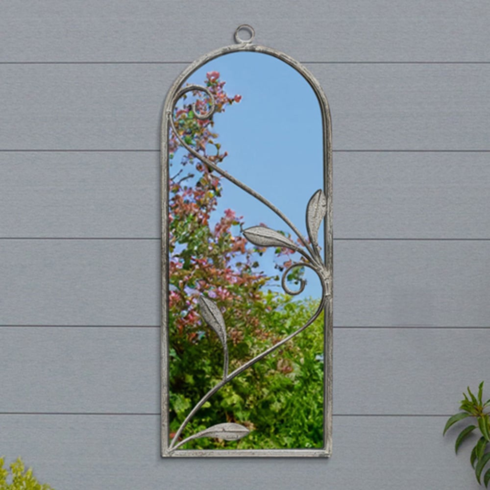 Enhance your space with the Arcus Framed Arched Leaner Garden Wall Mirror. Its concrete-coloured metal frame complements the mirror glass, while a black, all-weather backing ensures durability. Stylish and robust, it boasts a keyhole fixing for easy hanging – simply hook it onto a screw. Perfect for indoor or outdoor use, this mirror effortlessly complements various décor styles. Measures 64cm x 24cm.