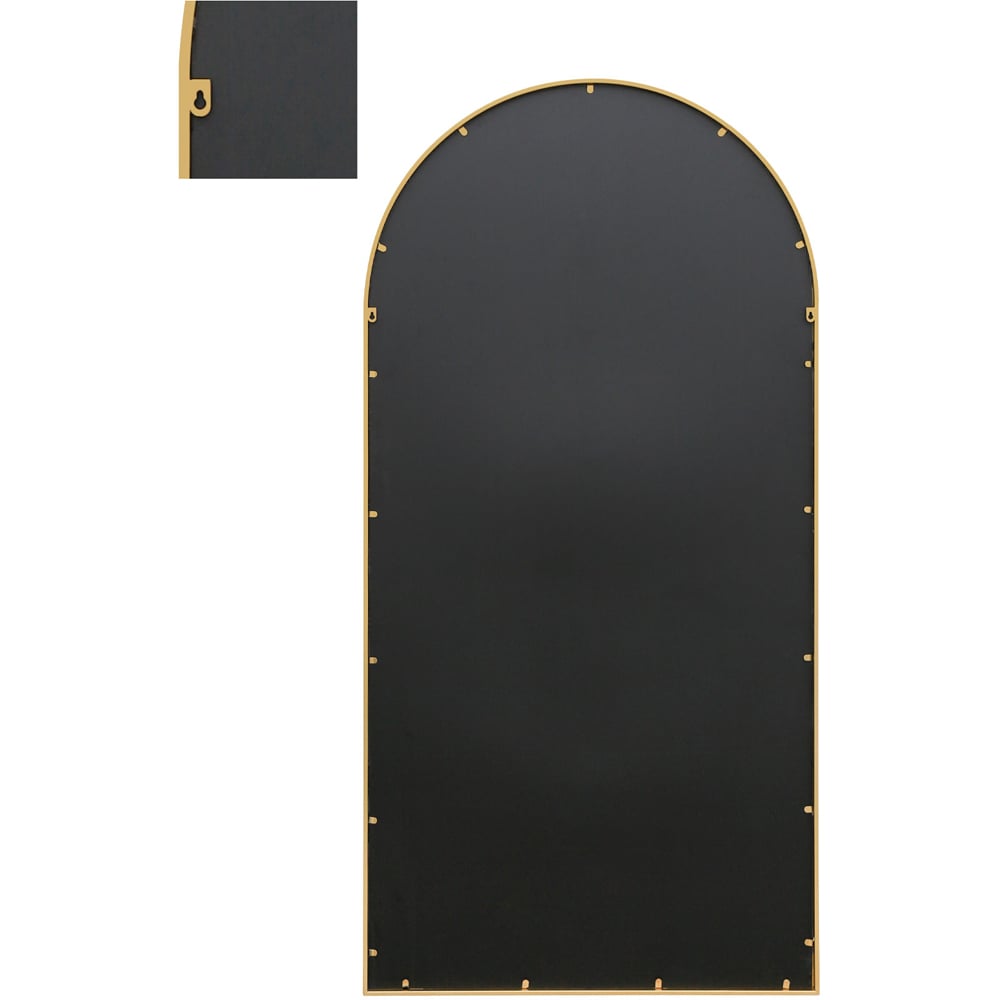 The Arcus framed arched leaner and wall garden mirror adds a touch of elegance to any setting. Its gold metal frame complements the mirror glass, while a black all-weather backing ensures durability. Simple to install with two keyhole fixings on the back, just hook it onto a screw. Perfect for indoor or outdoor use, this versatile mirror enhances a variety of décor styles. Measuring 200cm x 100cm.