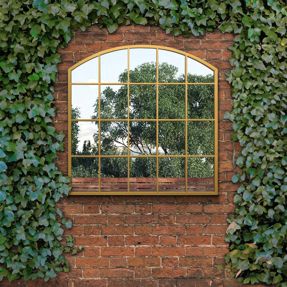MirrorOutlet The Arcus Gold Framed Arched Wall Garden Mirror 100 x 100cm