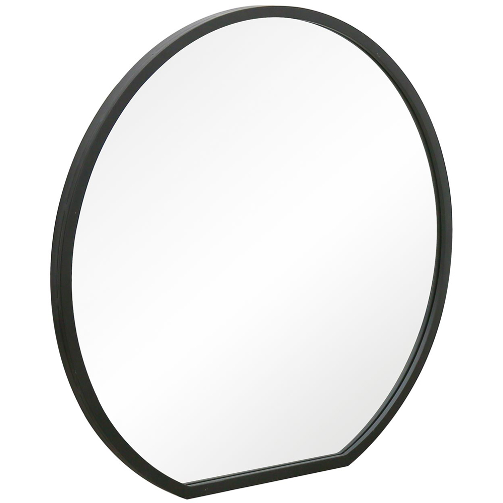 Make a statement with the Circulus Black Flat Bottom Circular Outdoor Wall Mirror. This striking 84cm x 80cm mirror boasts a sleek black metal frame with a flat bottom, creating the illusion of a mantlepiece mirror. Its all-weather black backing ensures it’s ready for any weather. Hang it on your wall or use it as a free-standing feature – the choice is yours. Pre-welded keyhole fixings provide for easy, flush wall mounting. Weighing in at approximately 10kg, this high-quality mirror arrives fully insured. All you’ll need are suitable wall fixings for your wall type.