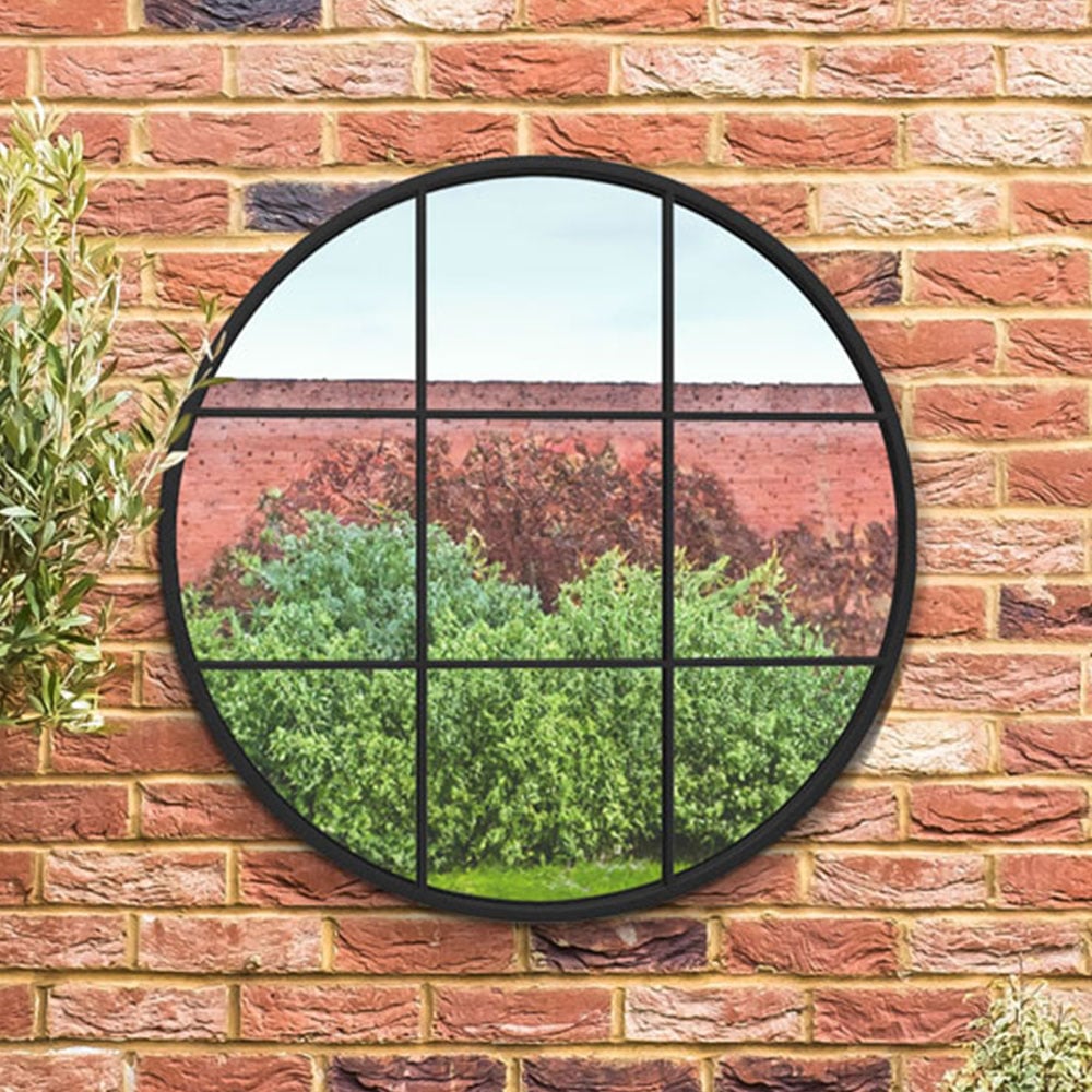 MirrorOutlet The Circulus Black Metal Round Window Garden Wall Mirror 80 x 80cm