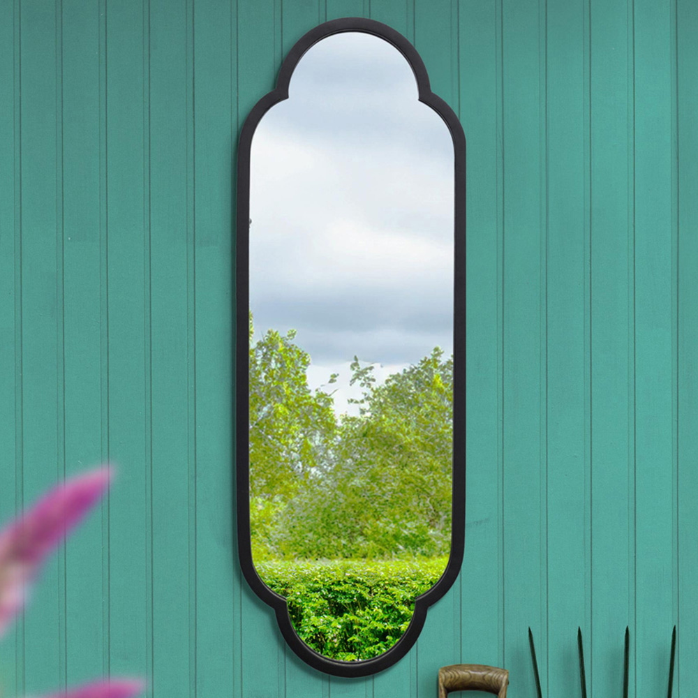 MirrorOutlet The Duplici Black Metal Double Arched Oval Outdoor Garden Wall Mirror 102 x 36cm