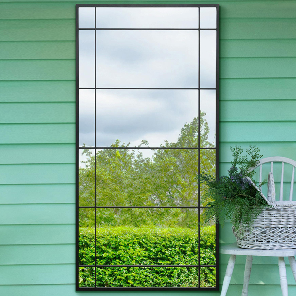 MirrorOutlet The Tabula Black Metal Window Outdoor Garden Wall Mirror 180 x 90cm