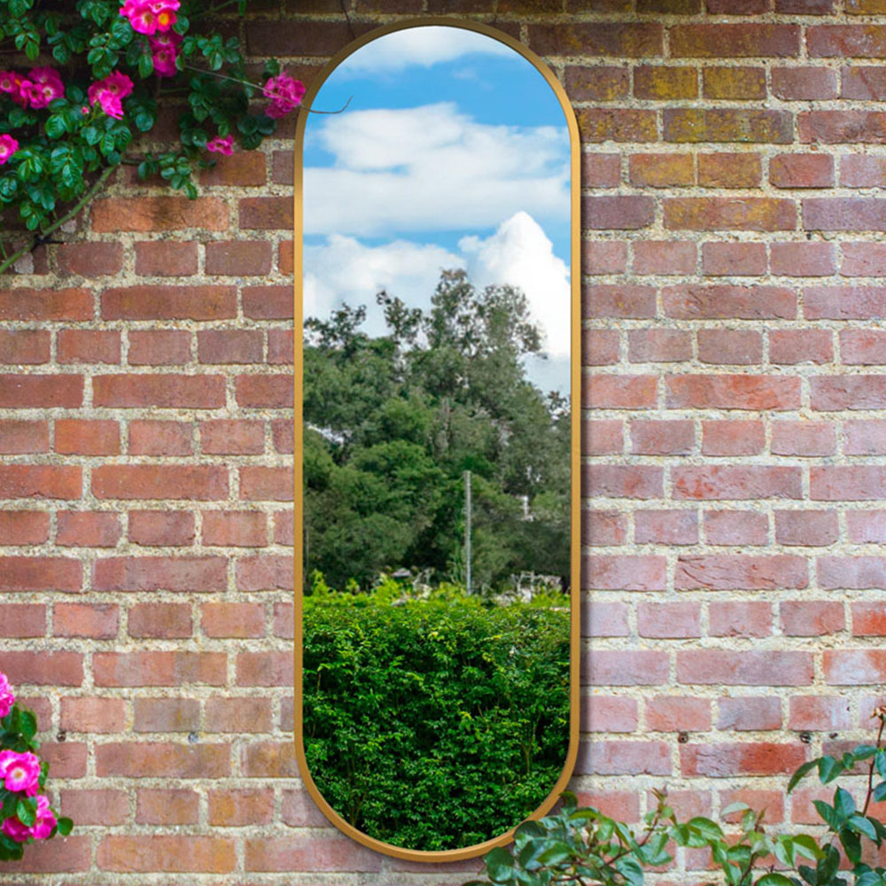 MirrorOutlet The Vultus Gold Metal Double Arched Garden Wall Mirror 180 x 60cm