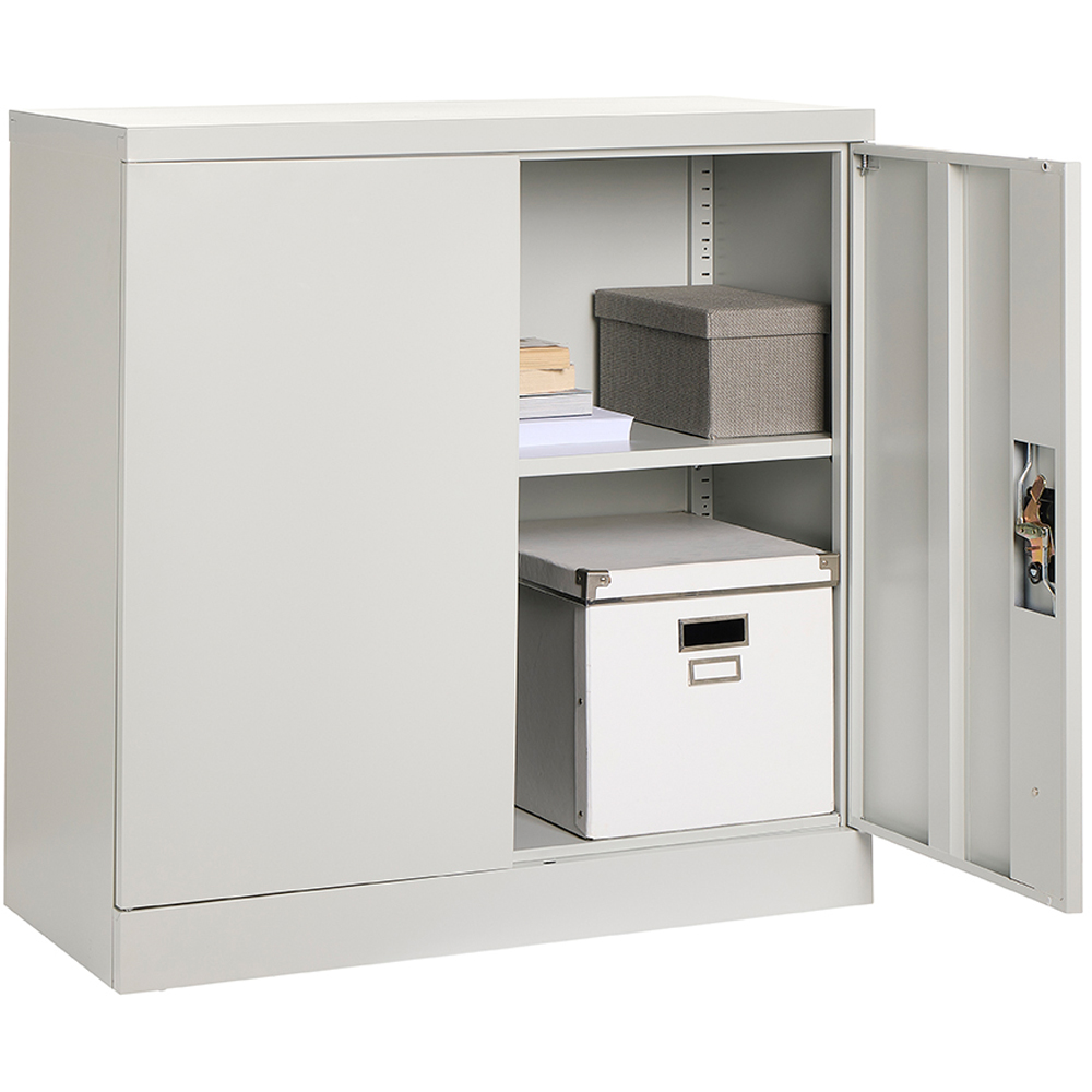 Keep your workspace tidy and your essentials within reach with this exceptional Grey Steel 2 Door Storage Cupboard, a must-have addition to any organised workspace.