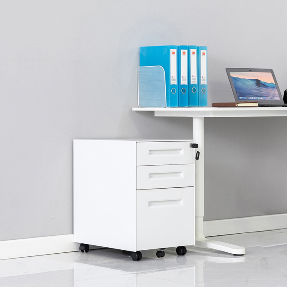 MMT Furniture Designs 3 Drawer White Metal Mobile Pedestal Under Desk Storage Cabinet