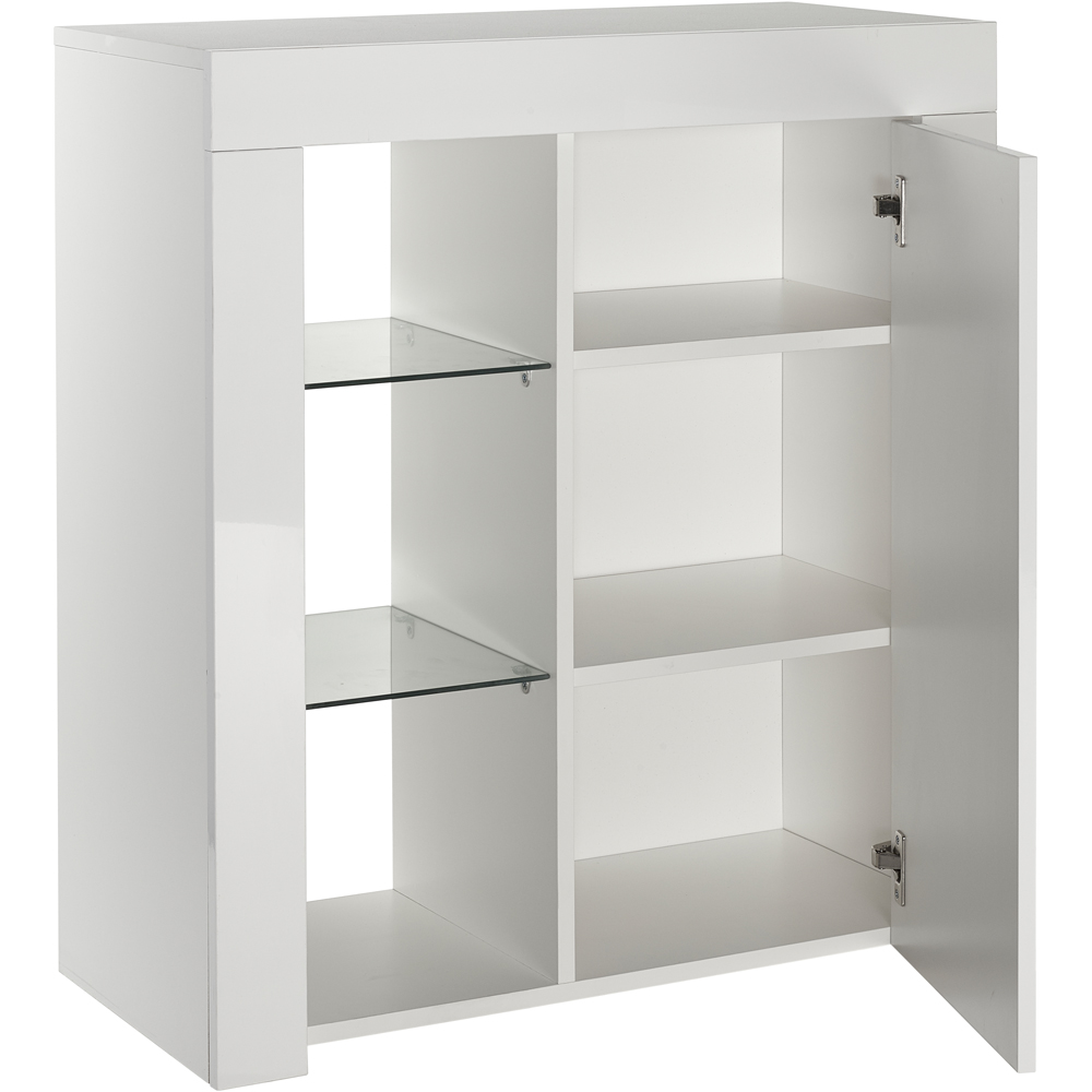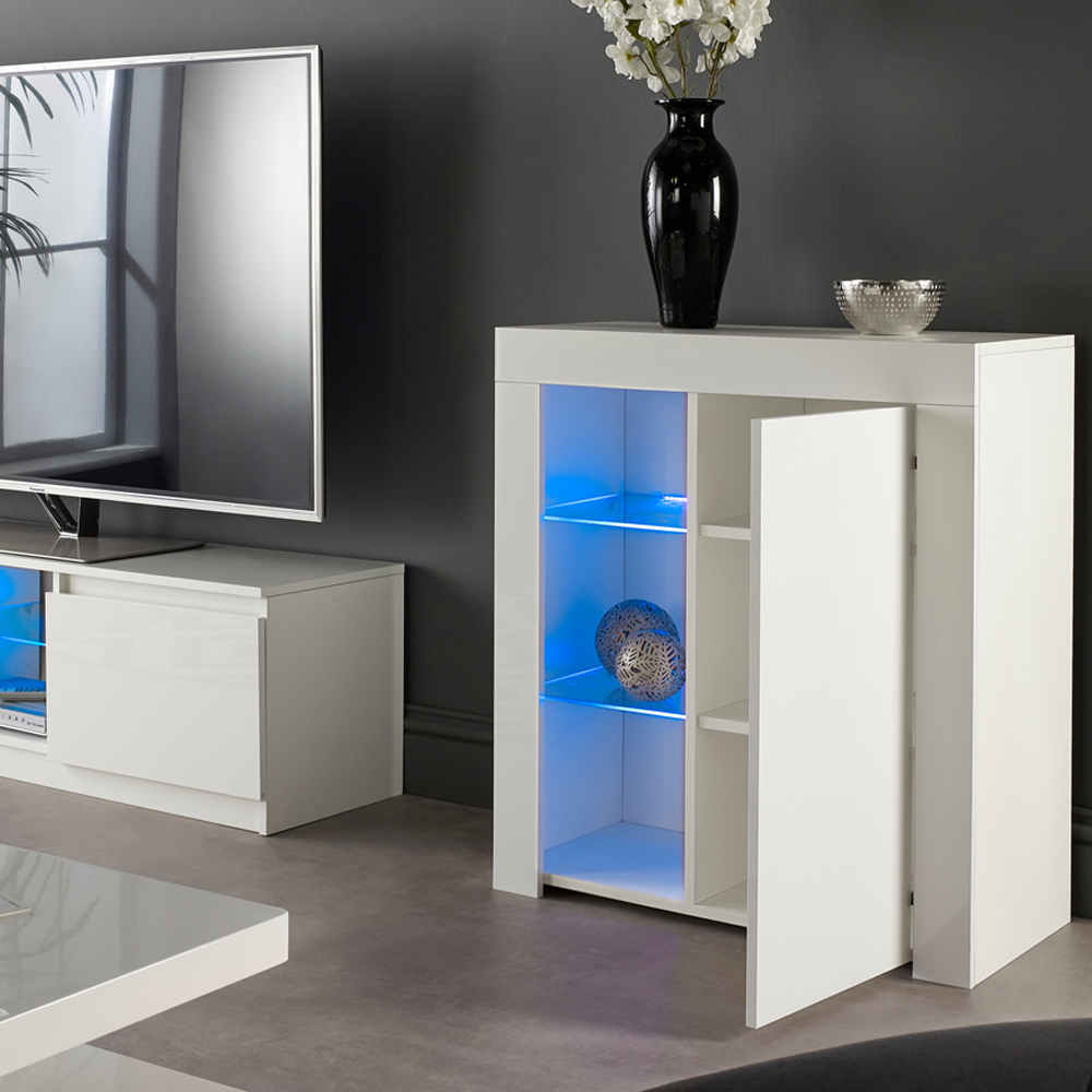MMT Furniture Designs Single Door 3 Shelf Matt Gloss White Modern Sideboard with LED