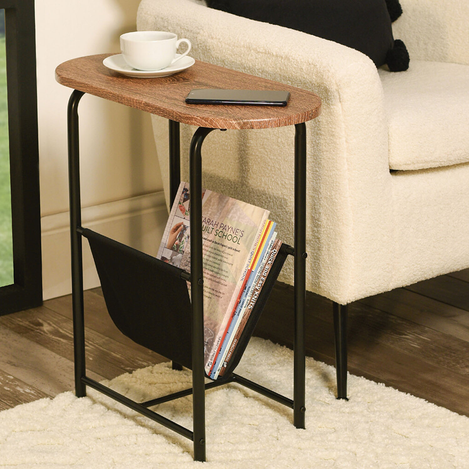 A stylish addition to any room, this magazine side table boasts a sleek design that complements existing furniture. Keep your newspapers, magazines, and books organised with the integrated magazine rack, conveniently located beneath the tabletop. Perfect for placing drinks and remotes, this practical table offers both style and functionality.