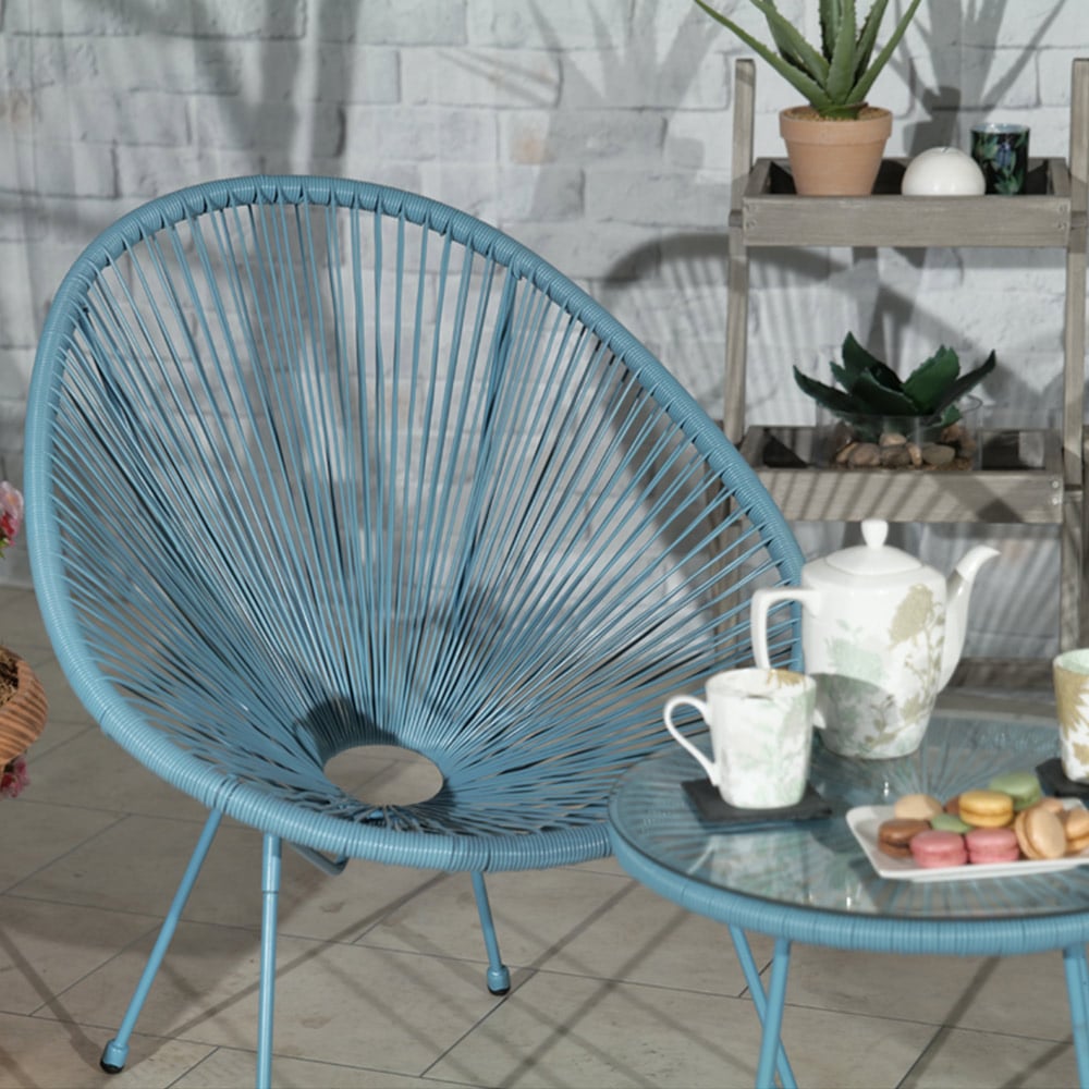 Indulge in the timeless elegance of the Monaco Egg Chair Set. This exquisite blue set, crafted from durable steel and woven rattan, is designed to elevate any outdoor space. The 50cm round glass table and two matching chairs create a perfect ensemble for relaxation and enjoyment. Its weather-resistant construction ensures lasting beauty, making it a perfect addition to patios and gardens year-round. Complete with a 50cm round table with a glass top and two chairs. Enhance your outdoor haven with this sophisticated and enduring piece.