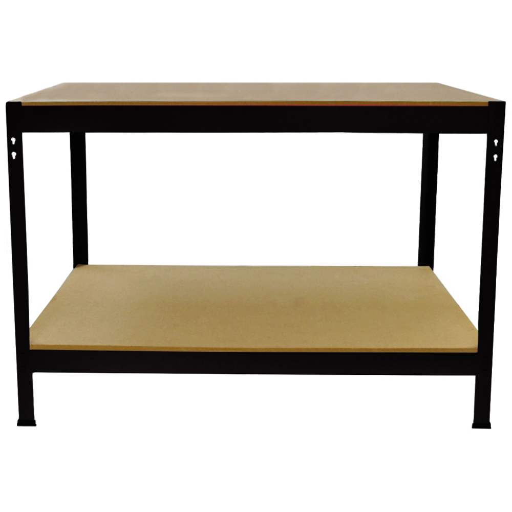 Transform your workspace with the Monster Racking Q-Rax Black Workbench, expertly designed for DIY enthusiasts who crave versatility and practicality. Whether in your garage, shed, or workshop, this robust workbench offers an expansive area to tackle all your projects. The thoughtfully included lower shelf provides ample storage space, keeping your tools and materials organised and accessible. Crafted with a high-quality steel frame and sturdy MDF shelves, this workbench promises durability that can withstand the rigors of everyday use. Each shelf supports an impressive 200kg, making it ideal for everything from tools to computers. Plus, its innovative boltless design allows for a straightforward assembly process—simply slide the components together with the help of a rubber mallet, and you’re ready to go. The clever keyhole mechanism ensures that setup is quick and hassle-free, allowing you to focus on what truly matters: your projects. For optimal performance, please note that the MDF shelves are untreated, we recommend treating each board for use in colder or damp conditions. Dimensions: 90 x 100 x 60cm. Elevate your DIY experience with the efficiency and reliability of the Monster Racking Q-Rax Workbench.