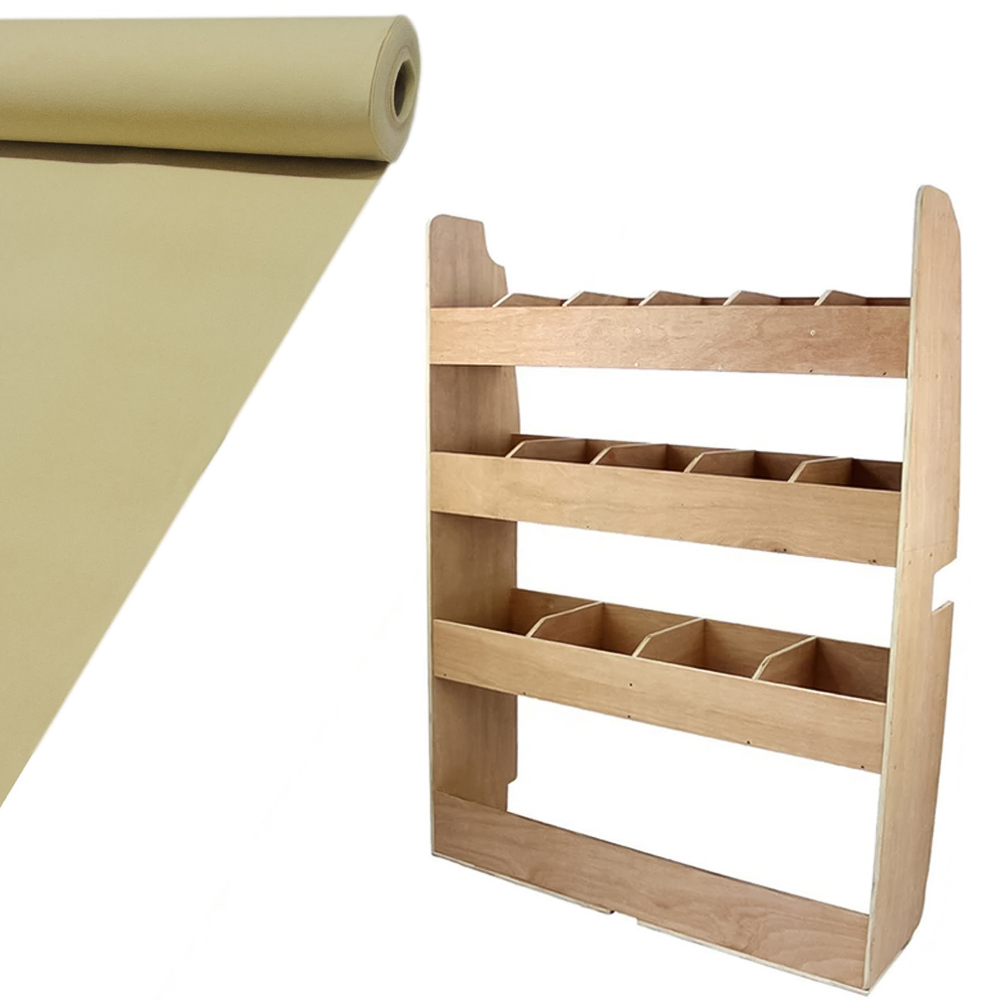 Transform your van',s interior with this practical and stylish 11m² wheat van lining kit, complete with a bespoke racking system. The highly flexible, yet robust, carpet effortlessly conforms to wheel arches, windows and other contours, ensuring a professional, crease-free finish. This heavy-duty, 100% bleachable polypropylene carpet is perfect for vans, motorhomes, cars and more. The three-tier racking unit, designed for the Ford Transit Custom SWB, boasts fifteen compartments across three shelves (six on top, five in the middle, and four on the bottom). Constructed from 12mm plywood, it includes all necessary fixings for secure installation on either the nearside or offside. Five cans of T-Mech ultimate trim adhesive are included, this high-performance adhesive boasts a 120°C heat resistance and features an adjustable flow nozzle for easy application. It',s specifically formulated for automotive use. Carpet dimensions: 5.5m x 2m. Total coverage: 11m². Thickness: 3mm. Product weight: 3.4kg. Rack dimensions: 102cm x 30cm x 136cm.