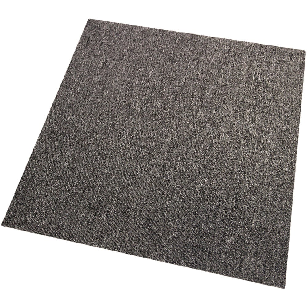 Transform your space with these Anthracite Grey carpet tiles. A heavy-duty, versatile solution offering endless layout options – lay them loose or secure them with adhesive. Each pack contains 20 tiles (5 square meters), a cost-effective alternative to fitted carpets. Perfect for homes, businesses, and workshops, these durable tiles boast a bitumen backing and can withstand bleach cleaning. Easily replace individual tiles if needed, making them a practical choice for high-traffic areas. Each tile measures 50cm x 50cm.