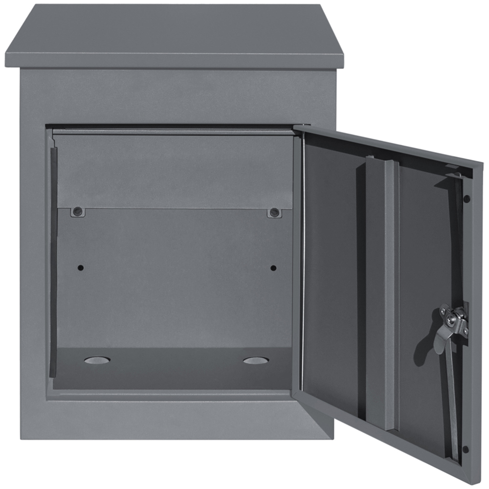 Secure your deliveries with the Black Anti-Theft Parcel Post Box. This large post box, ideal for homes and businesses, handles parcels and letters up to 35 x 19 x 15cm. Its anti-fishing mechanism keeps deliveries safe, while a unique barcode ensures reliable tracking. Quick assembly is a breeze thanks to the included screwdriver and screws. Crafted from 1.3mm galvanised steel with a durable powder coating, this weather-resistant box boasts a stylish black or grey finish.