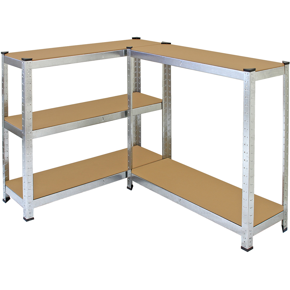 Organise your garage, utility room, or office with this robust galvanised steel shelving unit. The gleaming 90cm wide design boasts five shelves, each crafted from strong MDF and supported by interlocking galvanised metal components. Each shelf holds an impressive 175kg (total unit capacity 875kg), providing ample storage for even the heaviest items. This set includes two units.