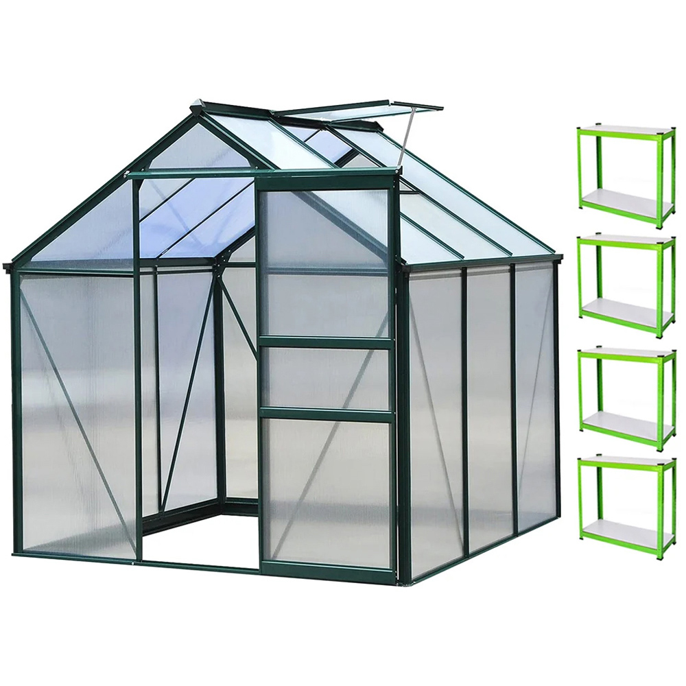 MonsterShop Green 6 x 6ft Greenhouse and Racking