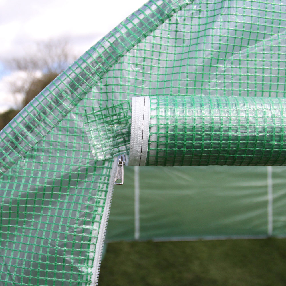 Cultivate the perfect growing environment with this 4m x 2m polytunnel. Its robust design offers superior protection against wind and rain, creating a microclimate ideal for extending the growing season of your fruits, vegetables, and other plants. The thick PE cover provides UV protection during warmer months, shielding your crops from harsh sunlight. For added stability, extra guide ropes and bracing bars are included at both ends. Simple to erect, this polytunnel offers convenient access via doors at each end, making plant care effortless. Enjoy the benefits of a protected growing space, regardless of the weather.