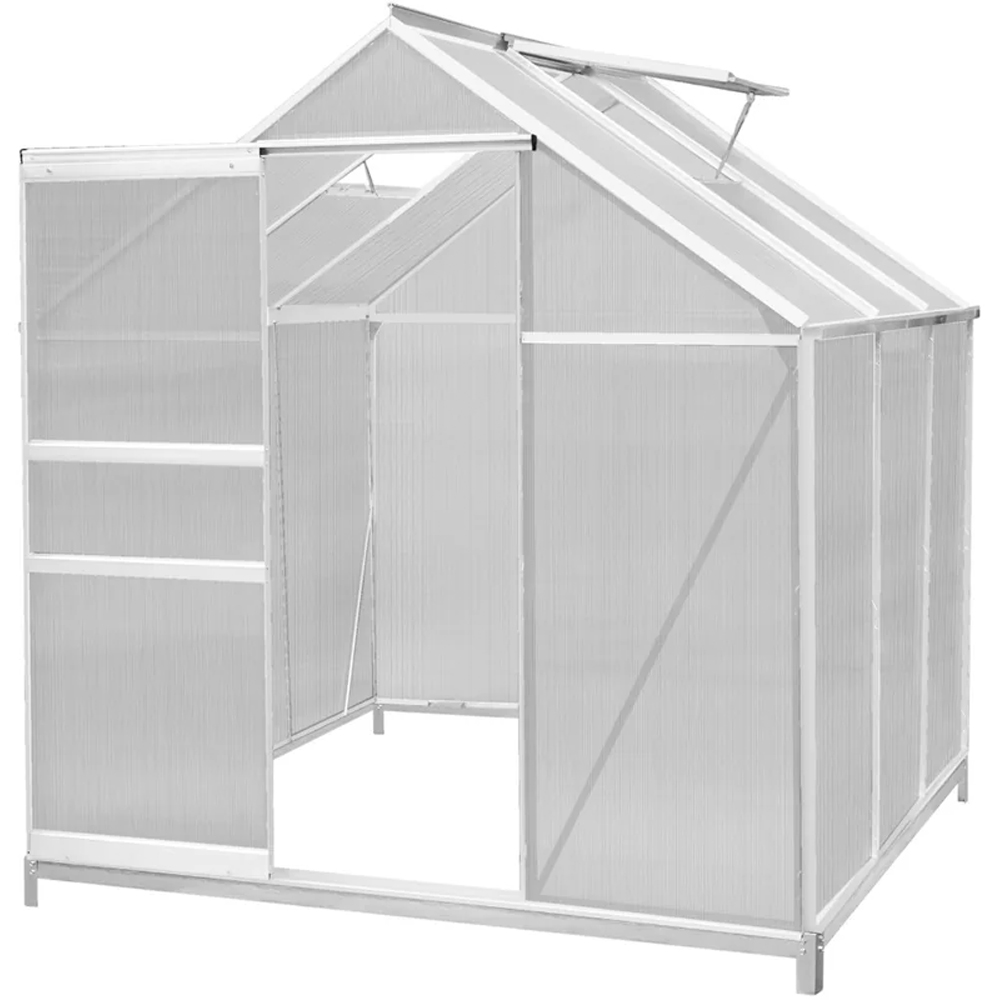 MonsterShop Silver Polycarbonate 6 x 6ft Greenhouse with Base