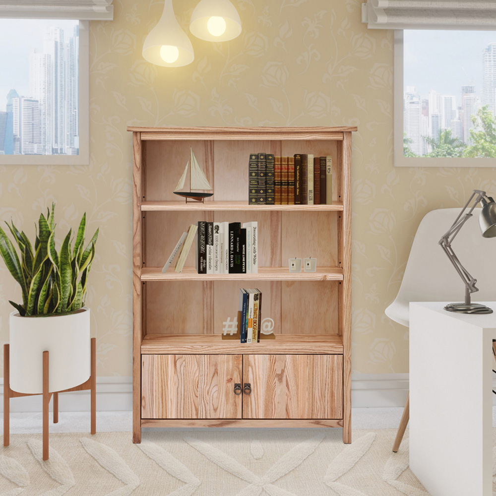 Practically perfect in every way, the Montese light wood bookcase will be an effortlessly stylish addition to your living space. Inspired by traditional Chinese cabinets, this bookcase exudes a simple but pleasing design, perfect to complement your decor. The three shelves provide excellent space to store and display your collection of books, CDs, or DVDs, helping you keep your space organised. The central shelves are adjustable to tailor the space to suit your requirements. The very handy two-door cupboard is great for putting away any item that isn't used daily. The top is ideal for displaying a favourite photograph or a houseplant. Constructed by skilled craftsmen to the highest standards using responsibly sourced hardwood and veneers, from a combination of solid Sassafras wood, from the Oak family, and ash veneer. The solid wood parts are brushed and finished with a clear lacquer to give them an aged look that will look great in any room. These attributes, combined with a simple construction for easy assembly, make it a great product for any household. Dimensions: 120 x 85 x 25cm.