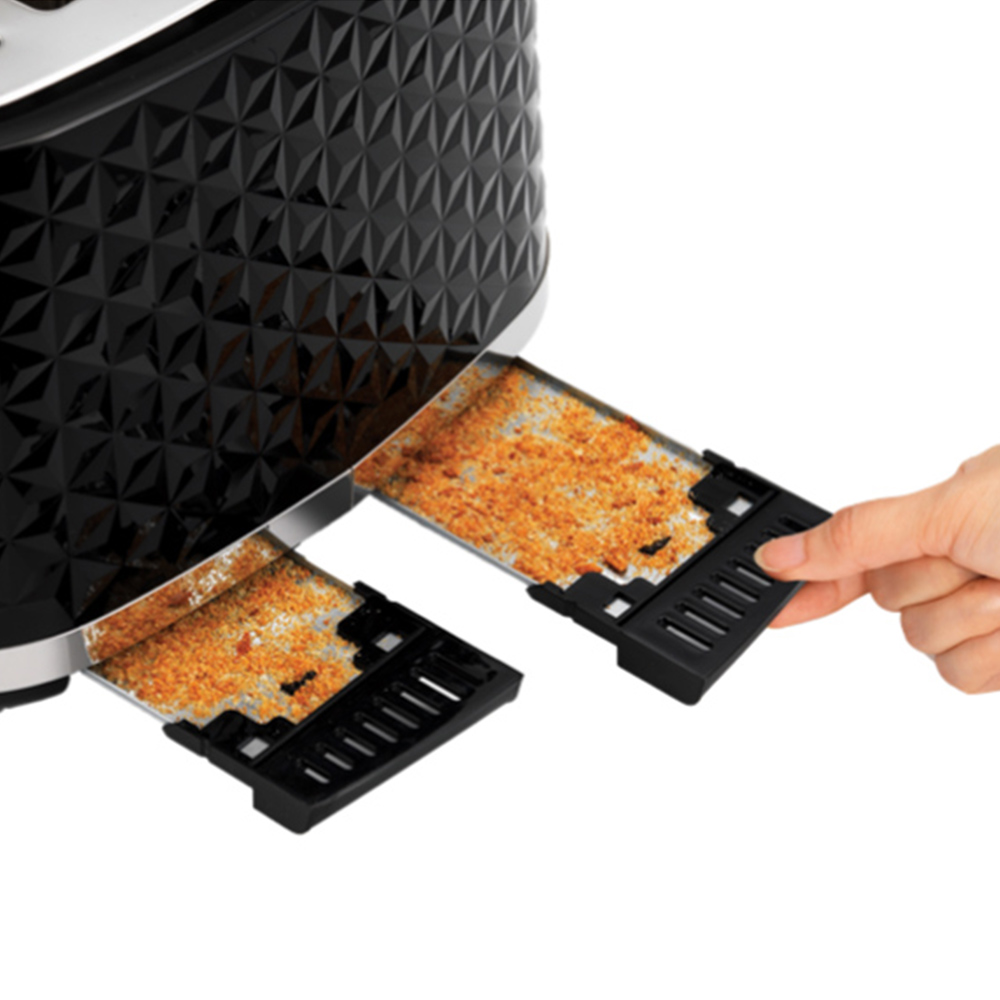 Make mornings easier with the Morphy Richards Vector 638178 Black 4-Slice Toaster. This stylish toaster boasts a contemporary design that will enhance your kitchen's aesthetic. Simple to use, it features variable browning control and an automatic pop-up function for perfectly toasted bread every time. Additional functions include settings for frozen bread, cancel, and reheat. Cleaning is effortless with the removable crumb tray. Its compact size and stainless-steel accents make it both a practical and visually appealing addition to any kitchen.