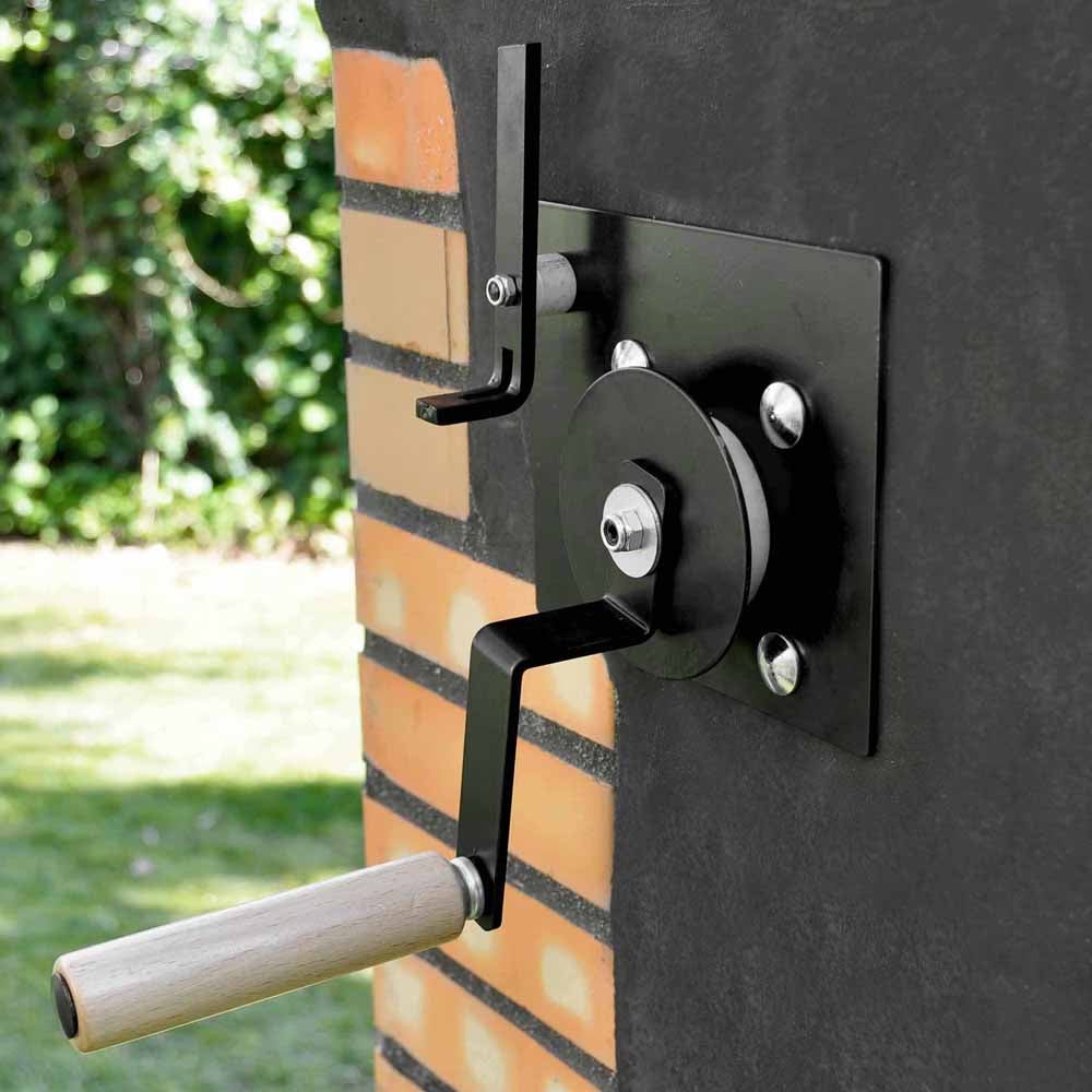 The Pan American Plus XL Barbecue provides exceptional versatility for both wood and charcoal cooking. Crafted from brown refractory concrete, it showcases an eye-catching brick definition and a sturdy metal hood. The barbecue comes equipped with a stainless steel Argentinian style grill, a lateral brazier for ember preparation, and a practical metal ash collection drawer. Its spacious grill, measuring 65 x 50cm, features v-shaped channels that effectively drain fat into a front grease trough. Cooking temperatures can be easily adjusted using a crank system that elevates the grill, which is suspended on chains. This low-maintenance barbecue requires no painting and includes two concrete shelves beneath the cooking area for generous storage space. A chimney promotes improved air circulation and efficiently directs smoke away from the grill. Overall dimensions are 120 (W) x 70 (D) x 220 (H) cm, with a weight of 850kg. Delivery is direct from the manufacturer within 2-3 weeks, complete with assembly instructions. Due to its size and weight, it will be delivered by lorry on a pallet, with the manufacturer's carrier reaching out to schedule a convenient delivery date. For added protection, explore our range of premium BBQ covers.