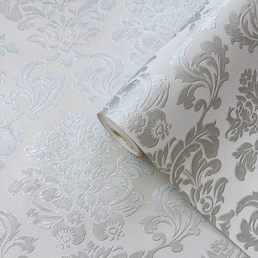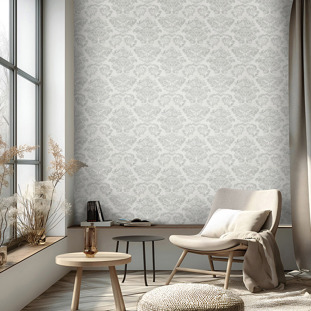 Muriva Adira Damask Silver Wallpaper