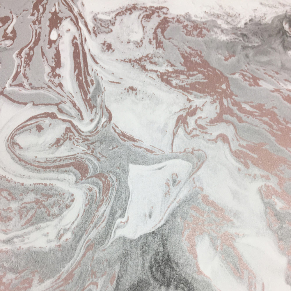 Transform your home with the Muriva Elixir Marble Rose Gold Wallpaper, showcasing this year's hottest trend: liquid marble. Swirling patterns flow beautifully, accented by metallic inks for a touch of glamour and dynamic movement. Paste-the-paper application is simple, with instructions on the reverse of the label. This wipeable wallpaper is easy to clean, ensuring lasting beauty. Features an offset design match, 53cm repeat, 10.05m roll length and 53cm width.